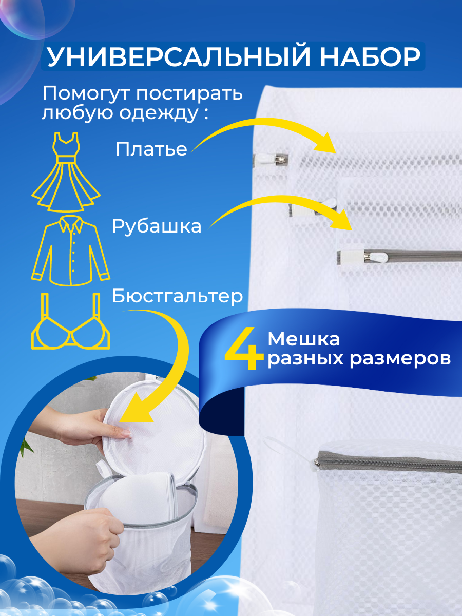 Набор мешков для стирки "Идея и точка" - 4 штуки, белый