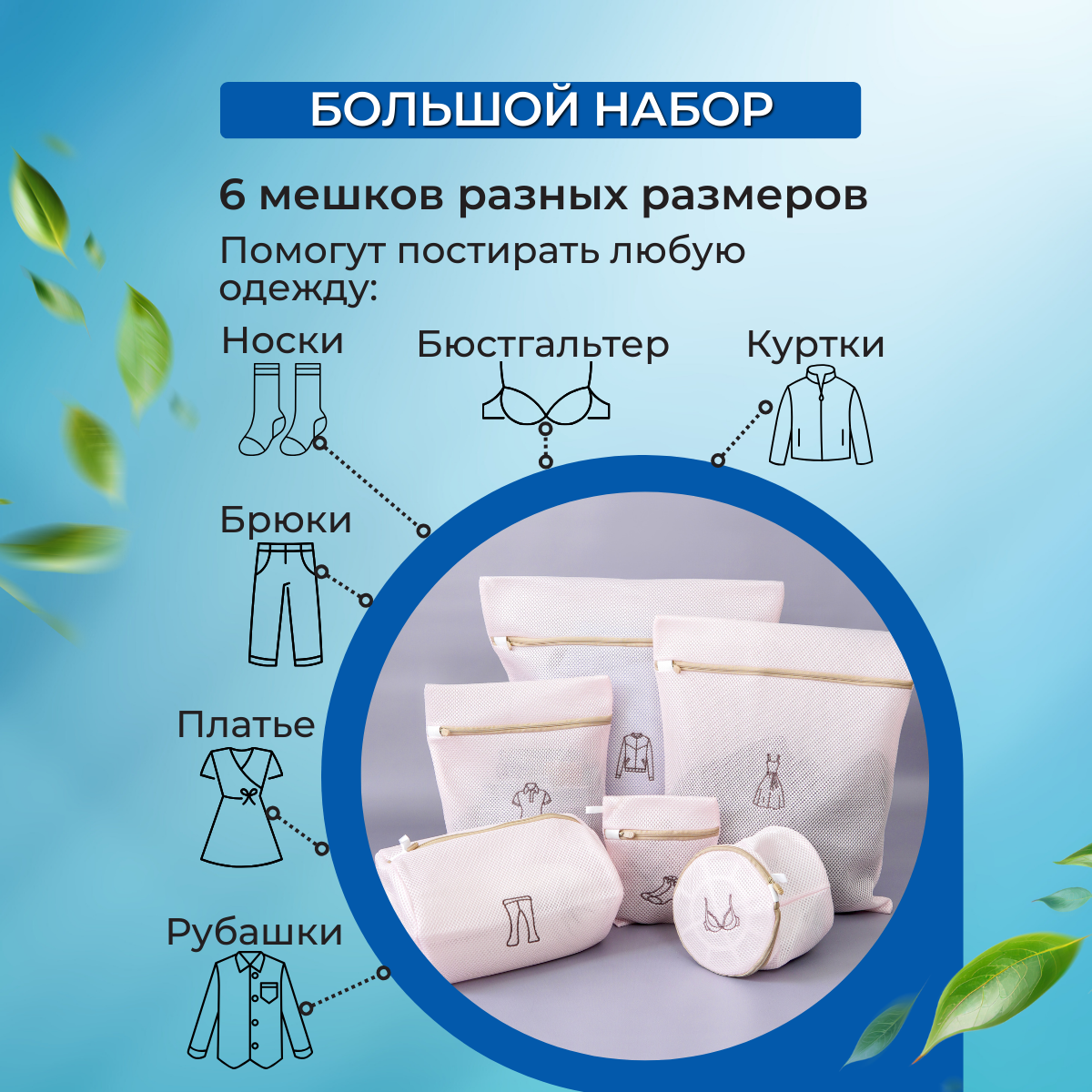 Набор мешков для стирки "Идея и точка" 6 штук, белый