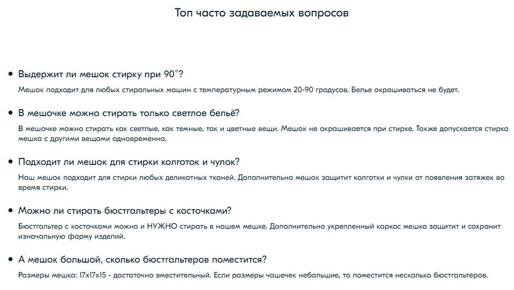 | Подробная комплектация | Прочный и практичный мешок для бережной стирки нижнего белья в автоматических стиральных машинах - 1шт |