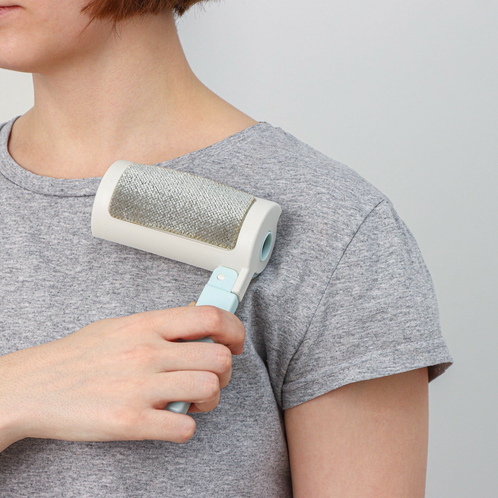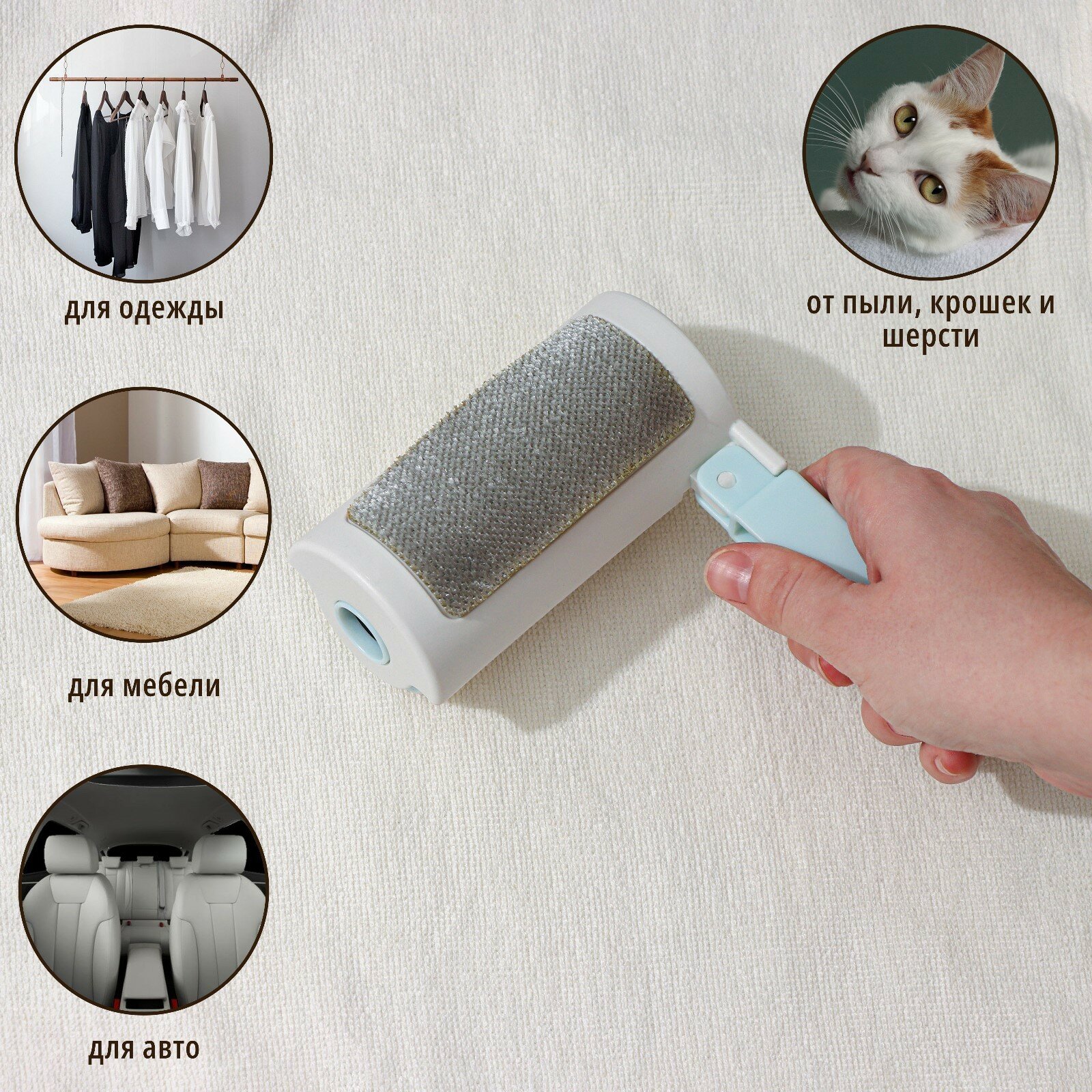 Ролик для одежды с велюровой щёткой, 55 листов, цвет белый с голубым интересное: