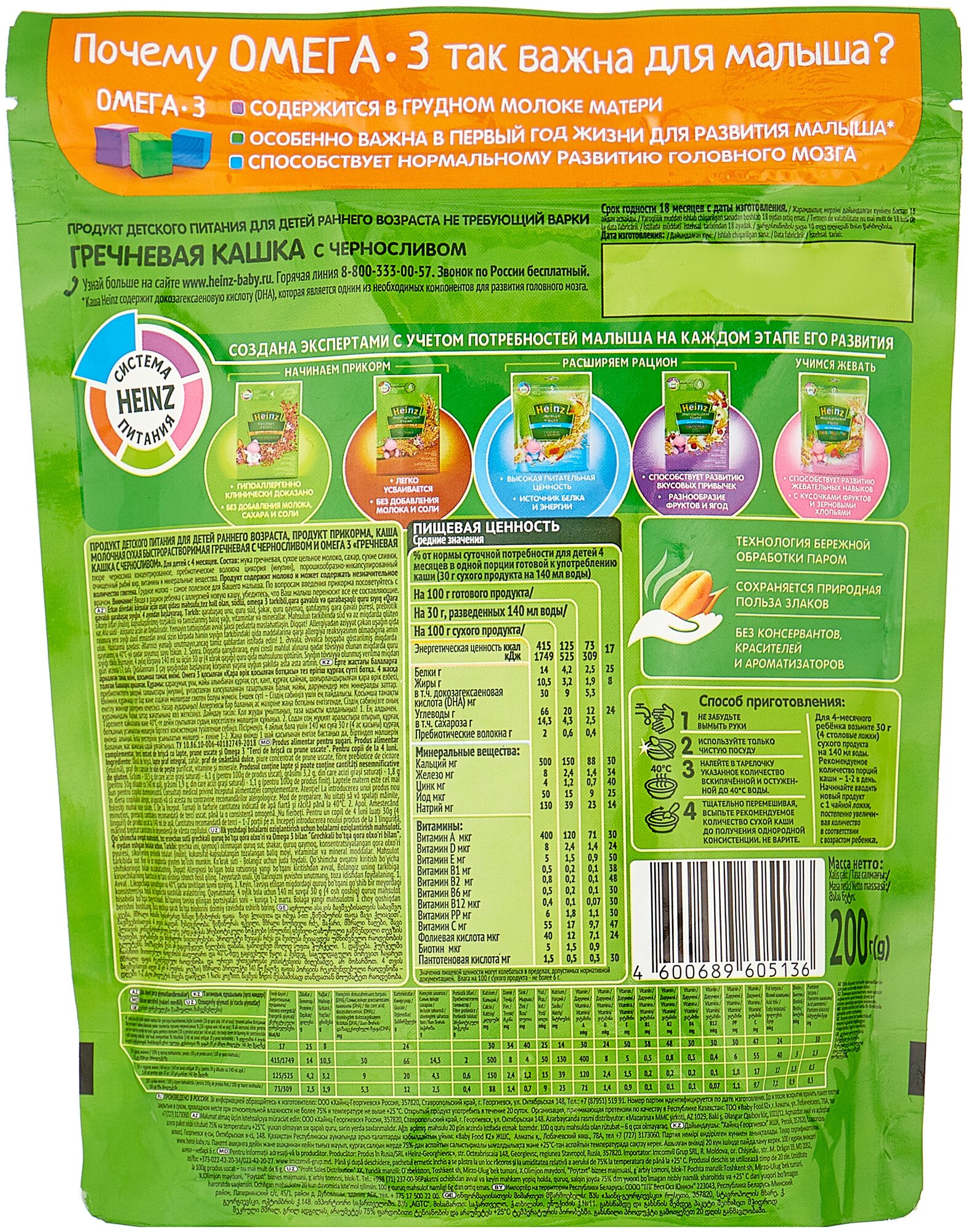 HEINZ Кашка Я расту Гречневая с Черносливом с Молоком {c 4 мес} {пауч} 200г интересное: