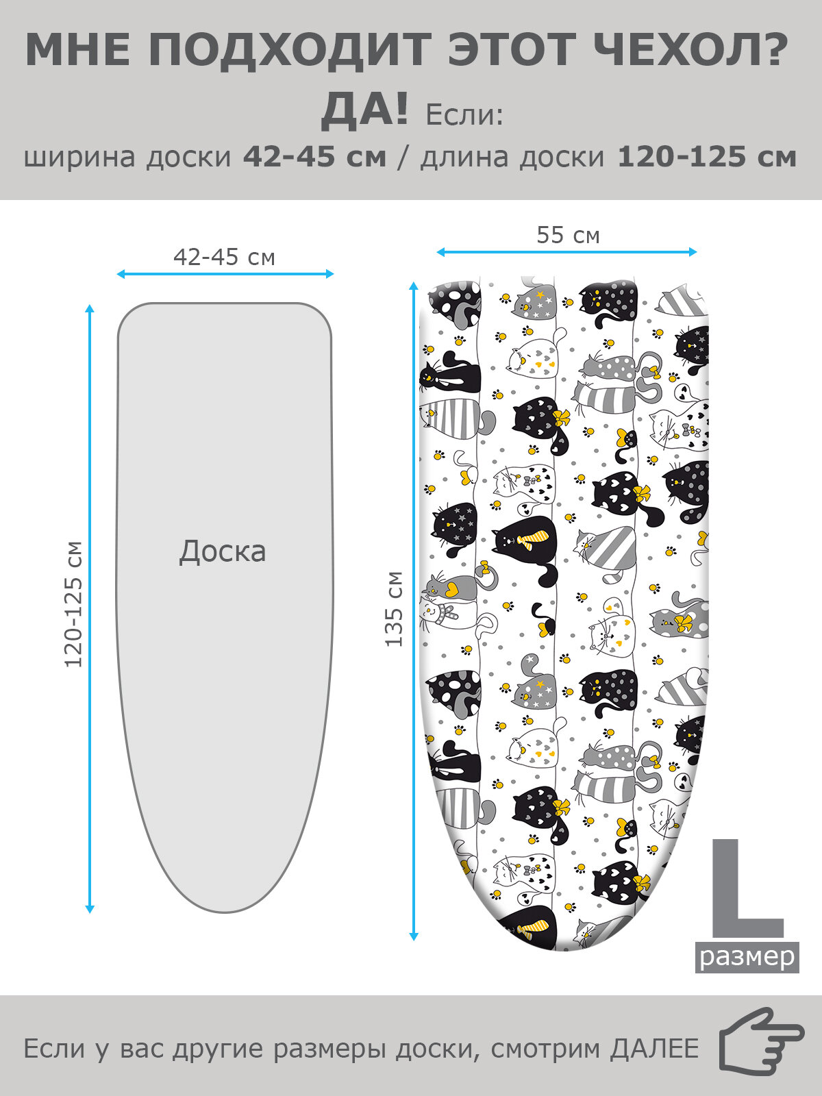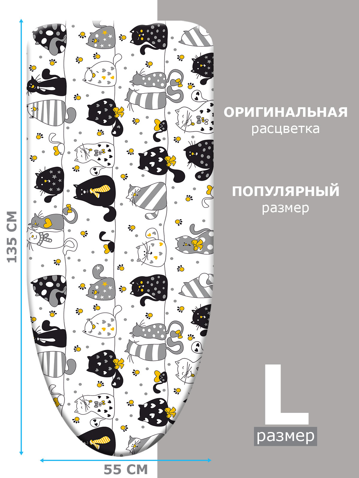 Чехол для гладильной доски, размер 135*55 см (L), CATS GRAY
