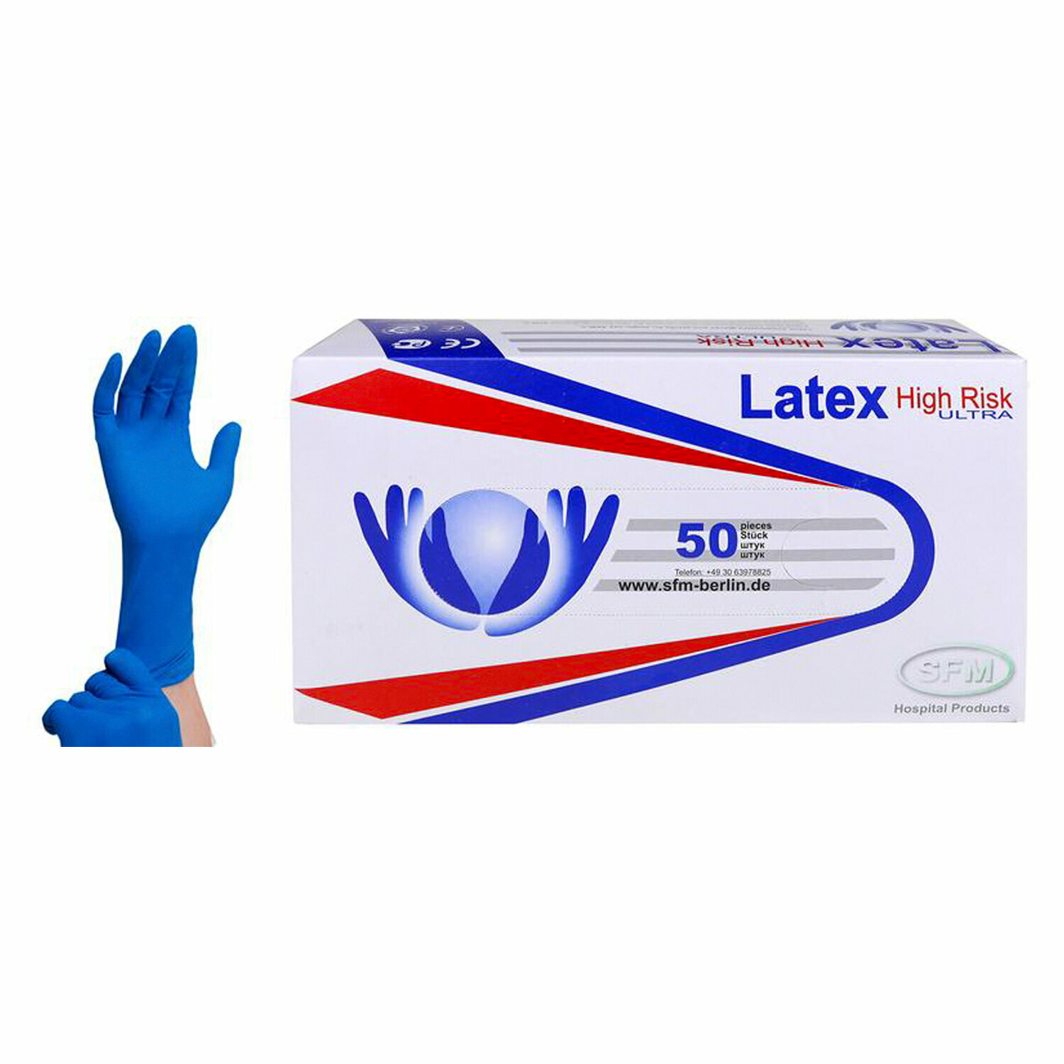 Перчатки латексные SFM смотровые, сверхпрочные, HIGH RISK ULTRA, 25 пар, размер L
