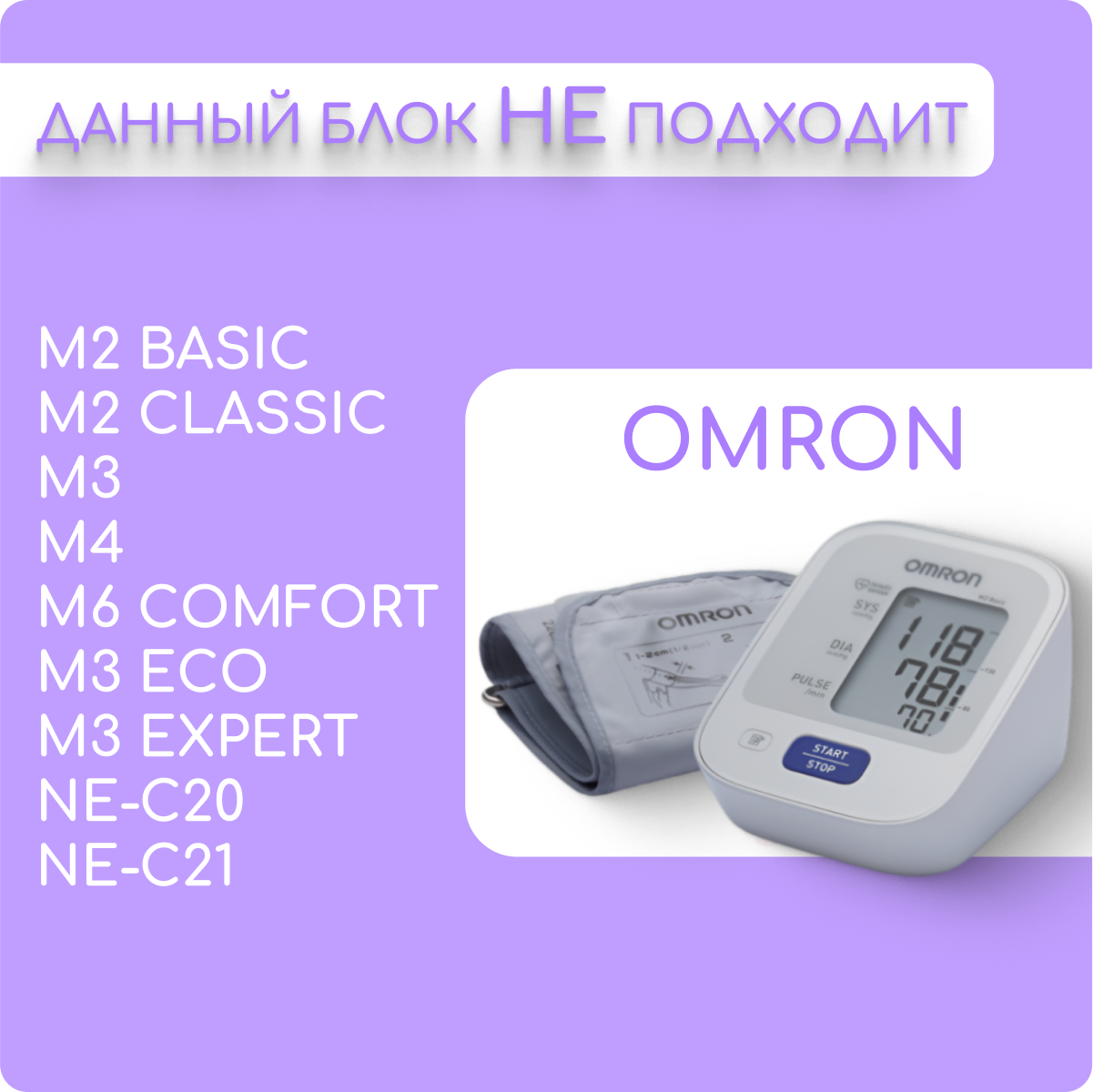 | Дополнительная информация | НЕ ПОДХОДИТ для Omron M2 Basic, M2 Classic, M3, M4, M6 Comfort, M3 Eco, M3 Expert, NE-C20, NE-C21 |