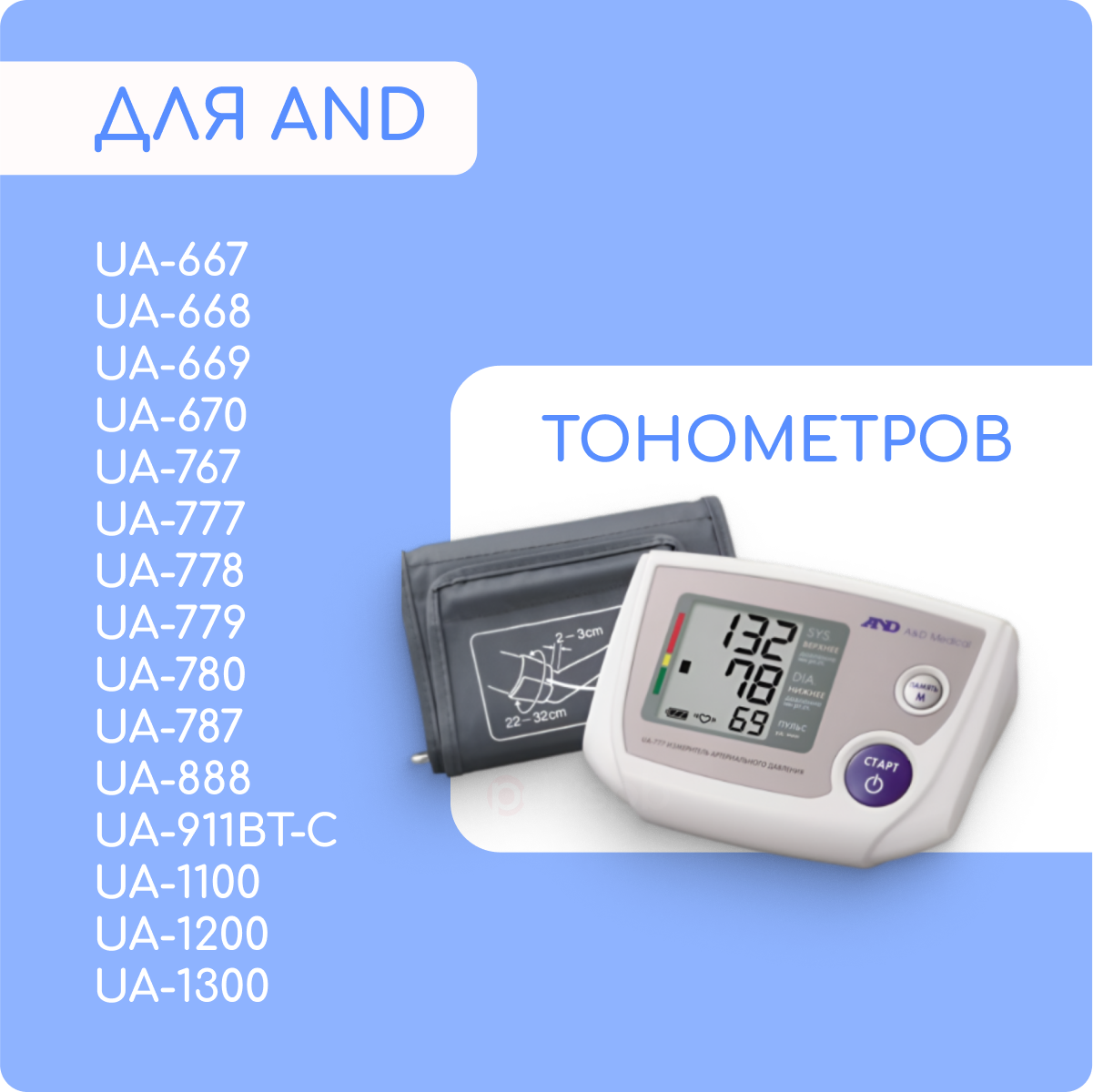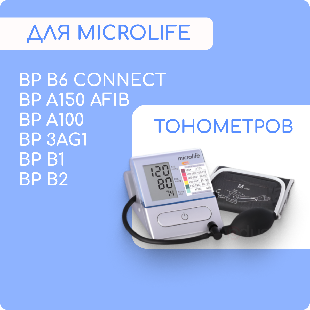| Совместимость | Тонометр, небулайзер, ингалятор Omron 717 B.Well AD 156, AD 155, PRO-33, PRO-34, PRO-35, PRO-36 AND / A&D модели: UA-667, UA-668, UA-669, UA-670, UA-767, UA-777, UA-778, UA-779, UA-780, UA-787, UA-888, UA-911BT-C, UA-1100, UA-1200, UA-1300, TB-182С Little Doctor модели: LD3, LD5, LD23, LD51, LD6 Nissei модели: DS-10a, DS-12A, DS-1011, DS-1031, DS-500, DS-700, DS-1902 Microlife AD-1024C , BP A100, BP 3AG1, BP B1, BP B2, AD-1024, BP B6 Connect, BP A150 AFIB MediTech для автоматических тонометров МТ-30, МТ-40, МТ-50 Armed MediTech Tensoval Medisana Citizen Samsung Gamma Dr. Frei Vega Norditalia Paramed Longevita |