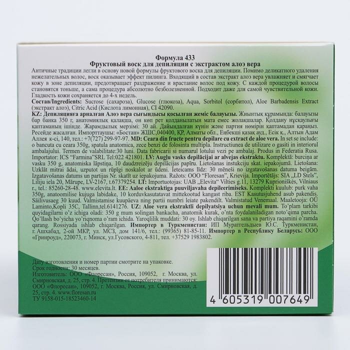 Фруктовый воск для депиляции Floresan с экстрактом алоэ вера, 350 мл интересное: