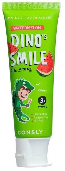 Купить Consly Детская зубная паста с ксилитом DINO's SMILE. Гелевая зубная паста без фтора для детей, вкус арбуза. 60 г