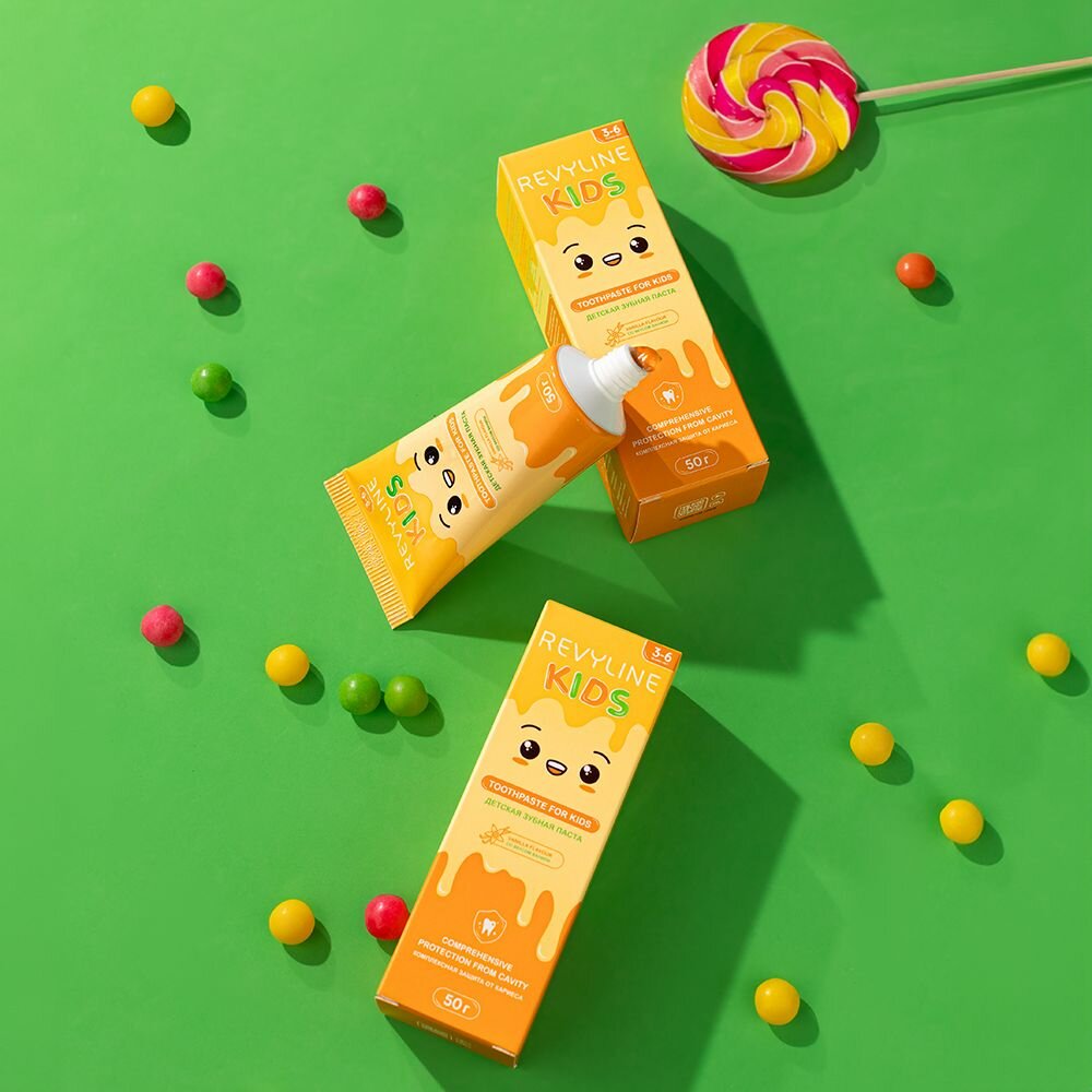 Зубная паста Revyline "Kids", ваниль, для детей, без фтора, 50 г, 3 шт.