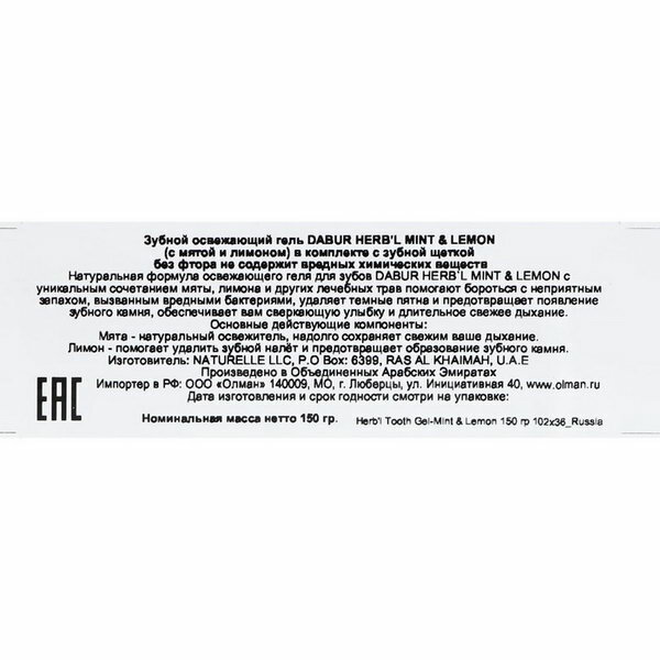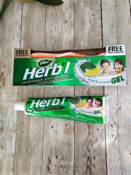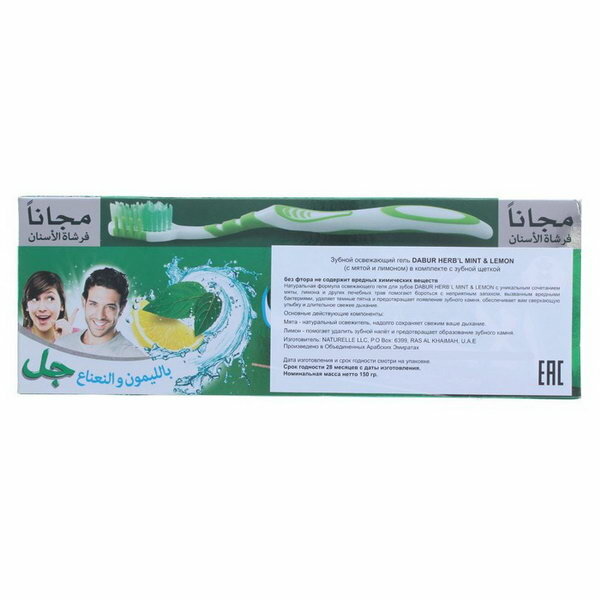 Набор Dabur Herb'l гель зубной освежающий с мятой и лимоном, 150 г + зубная щётка интересное: