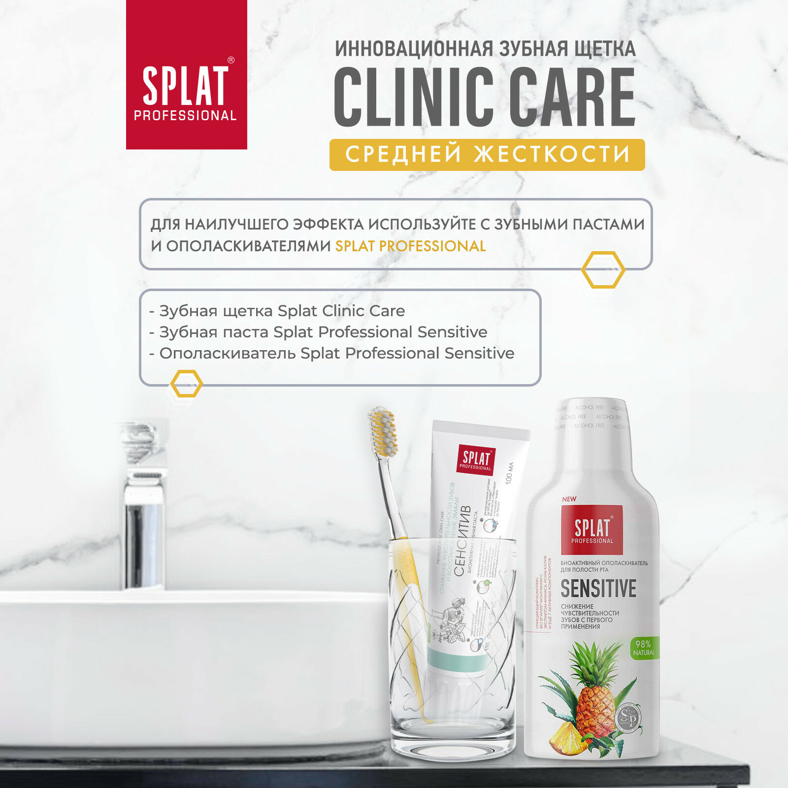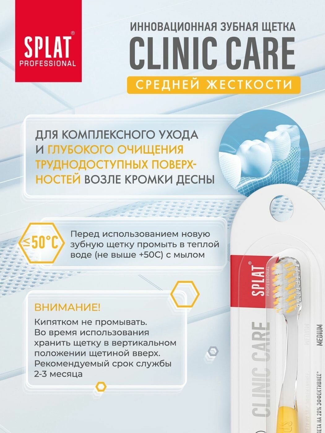 СохранитьЗубная щетка SPLAT Professional CLINIC CARE сплат профессиональная средней жесткости желтого цвета щетка для зубов 1 шт интересное: