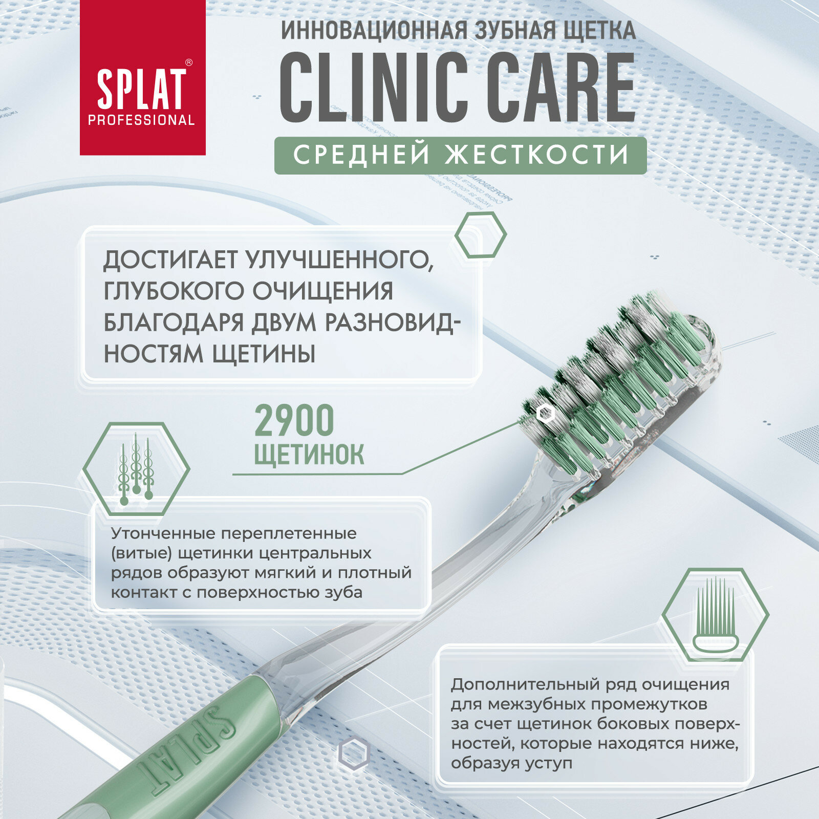 Зубная щетка SPLAT Professional CLINIC CARE сплат профессиональная средней жесткости зеленого цвета щетка для зубов 1 шт
