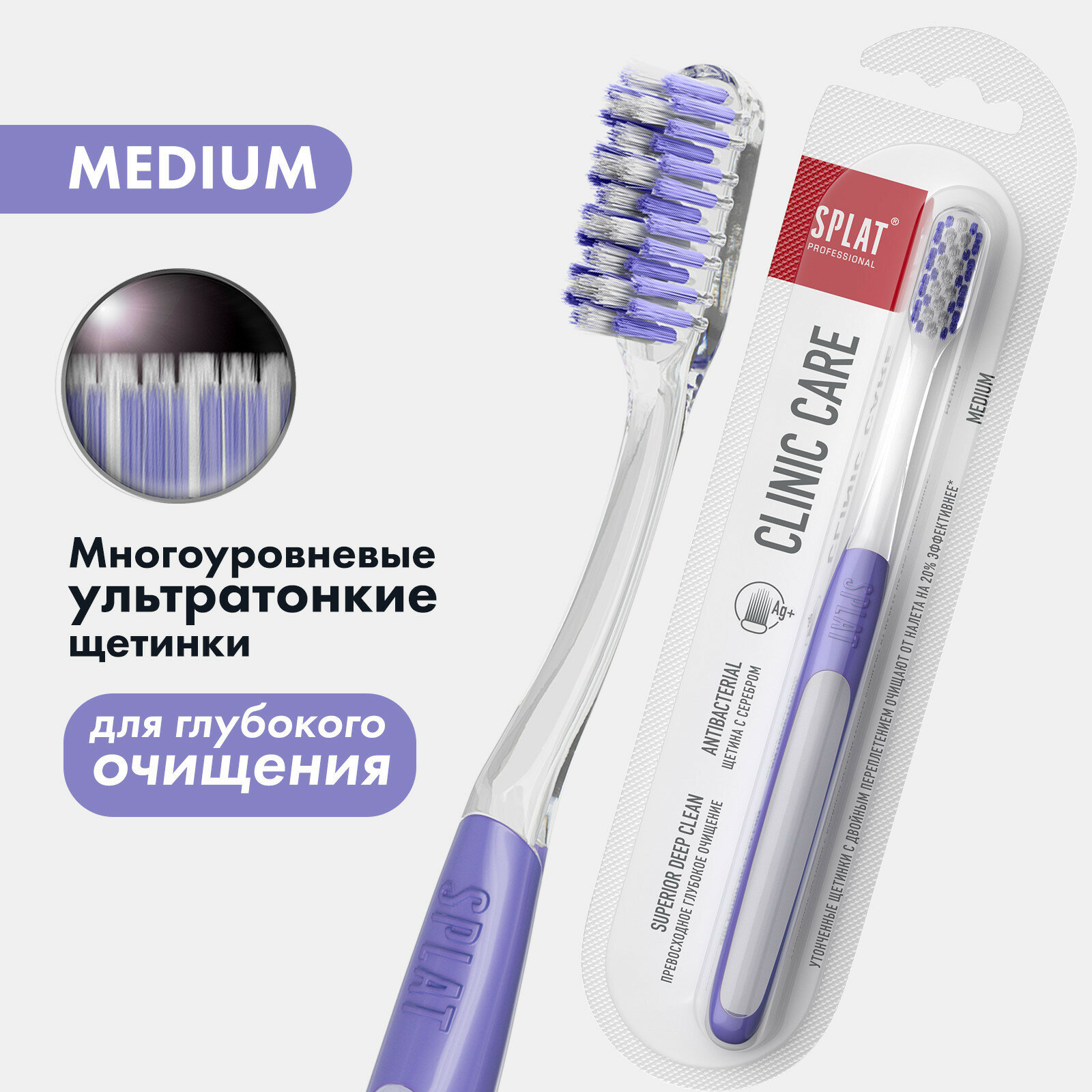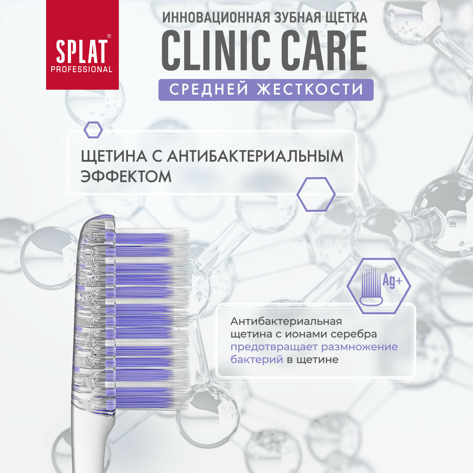 Зубная щетка SPLAT Professional CLINIC CARE сплат профессиональная средней жесткости белого цвета щетка для зубов 1 шт