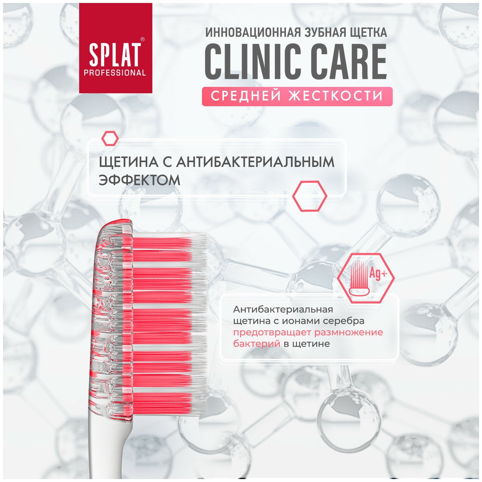 Инновационная зубная щетка SPLAT Professional CLINIC CARE Medium. Средняя. Коралловая