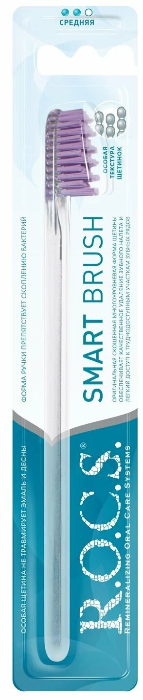 Зубная щетка R.O.C.S. Smart Brush Модельная, средняя жесткость, синяя/синяя