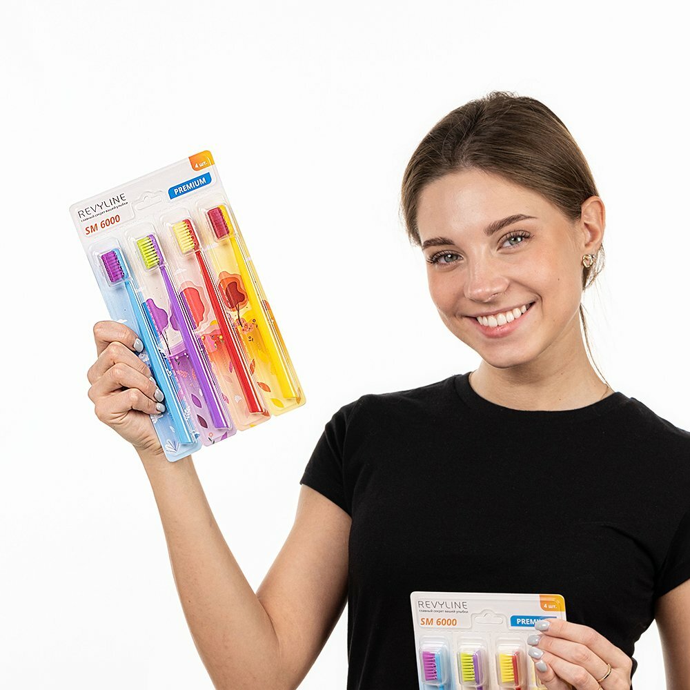 Набор зубных щеток Revyline SM6000, 4 шт, 6000 щетинок, эргономичная форма, яркий дизайн, Ревилайн