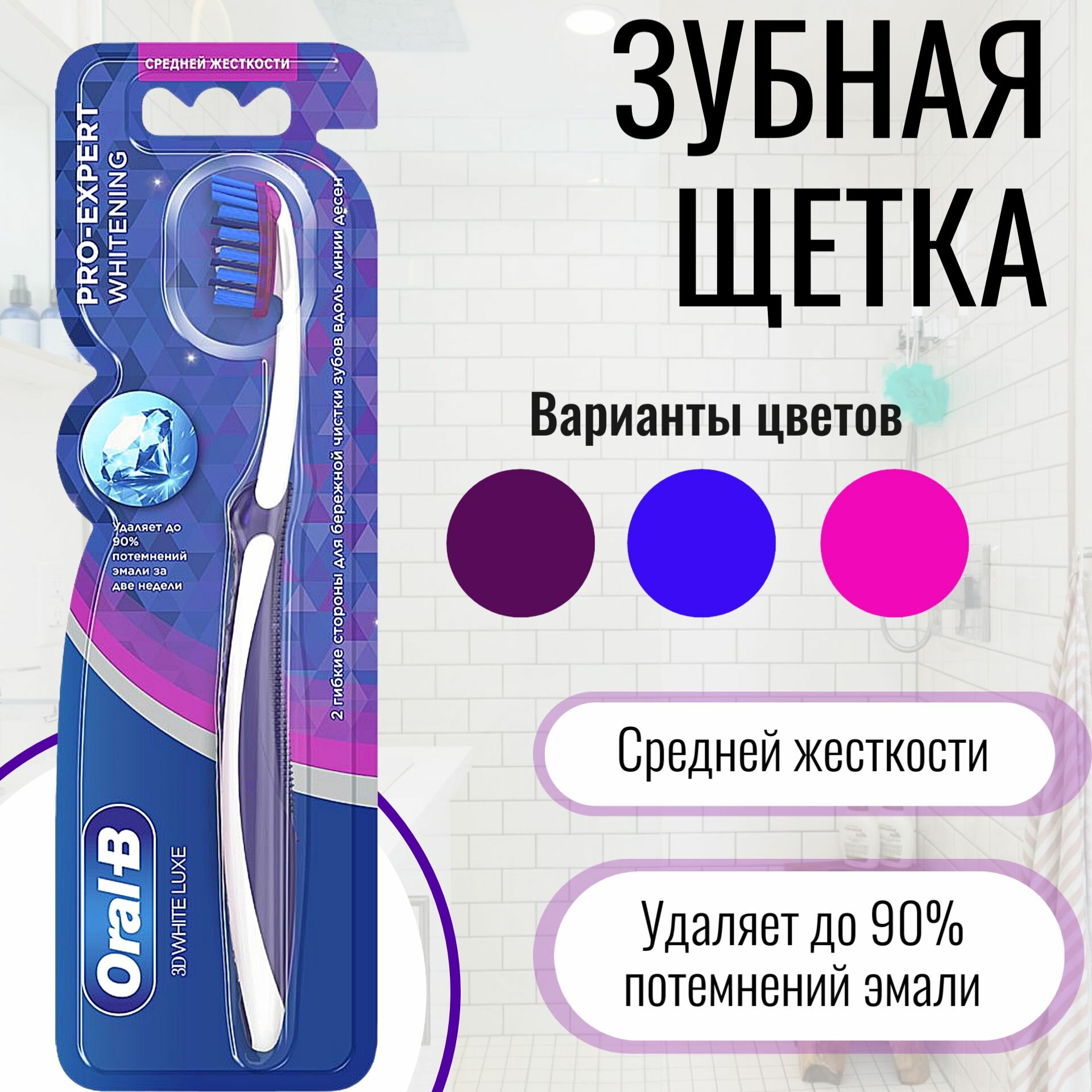 Зубная щетка Oral-B 3D White Luxe Pro-Expert Whitening средней жесткости, в ассортименте