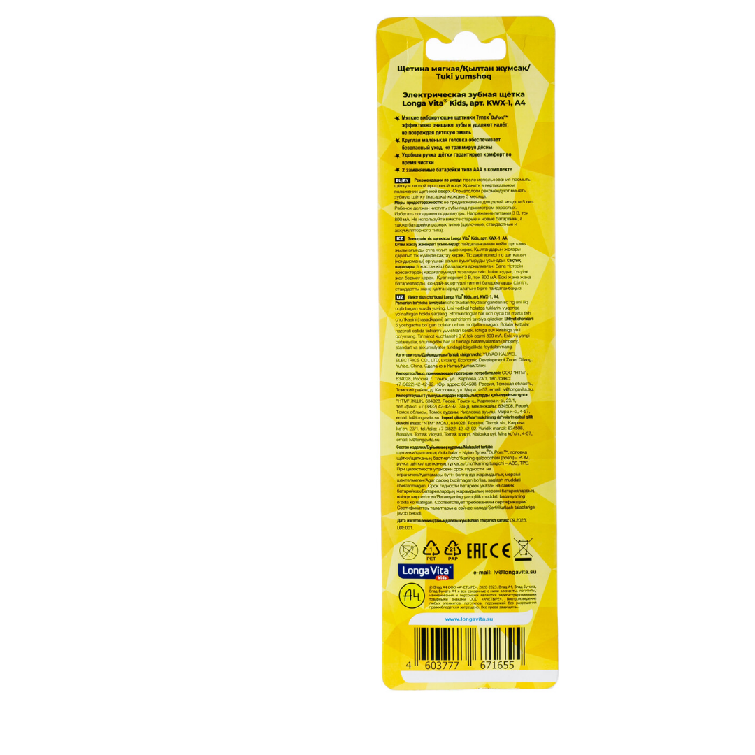 Купить Электрическая Детская зубная щетка, Влад А4 Longa Vita ротационная 2 насадки от 5 лет