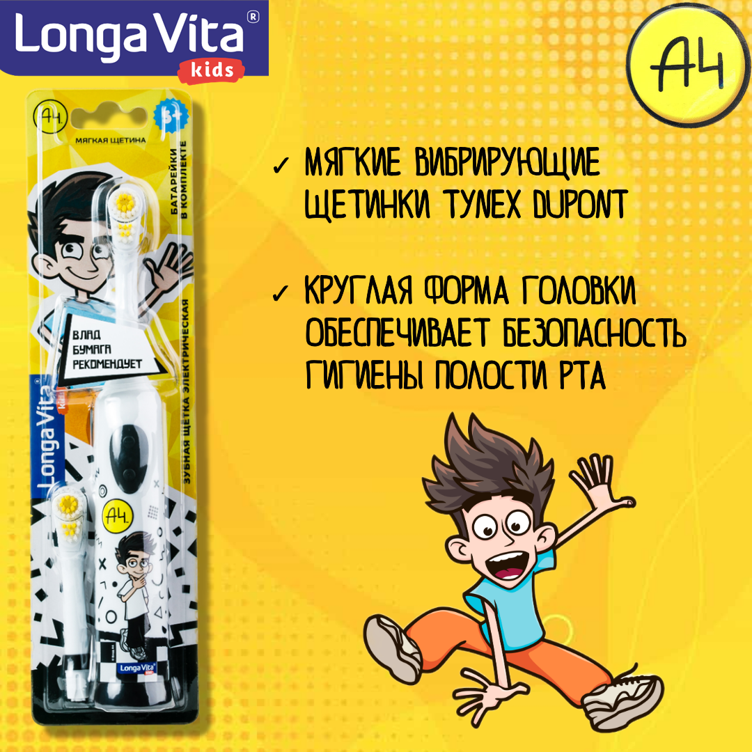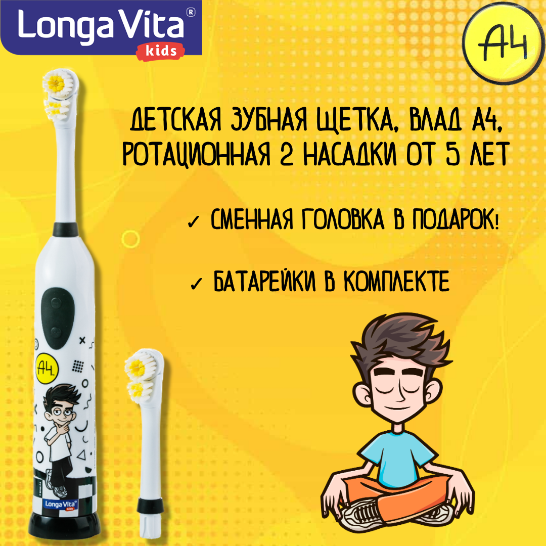 Электрическая Детская зубная щетка, Влад А4 Longa Vita ротационная 2 насадки от 5 лет интересное: