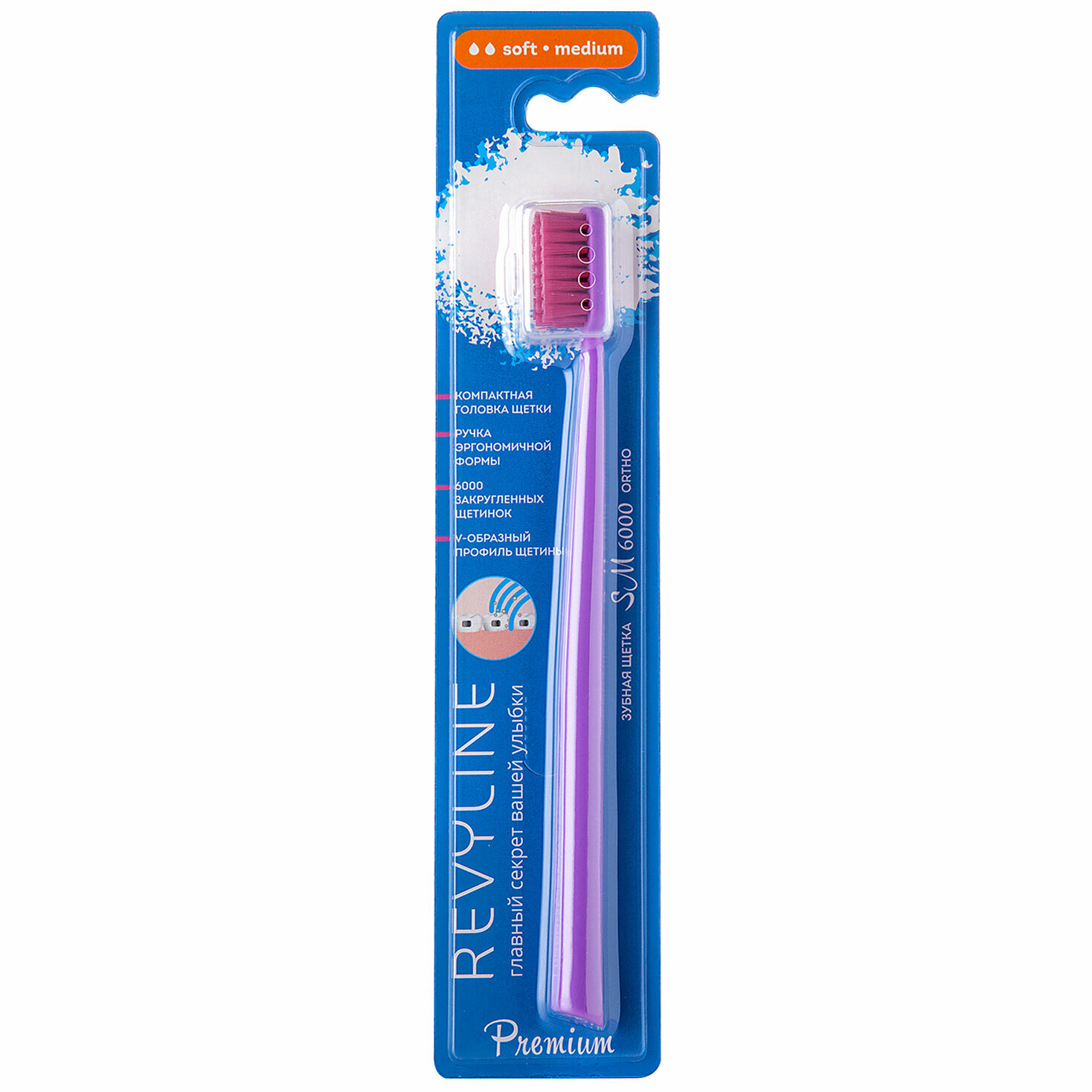 Зубная щетка Revyline SM6000 Premium Ortho/Ортодонтическая, для брекетов, сиреневая, Ревилайн