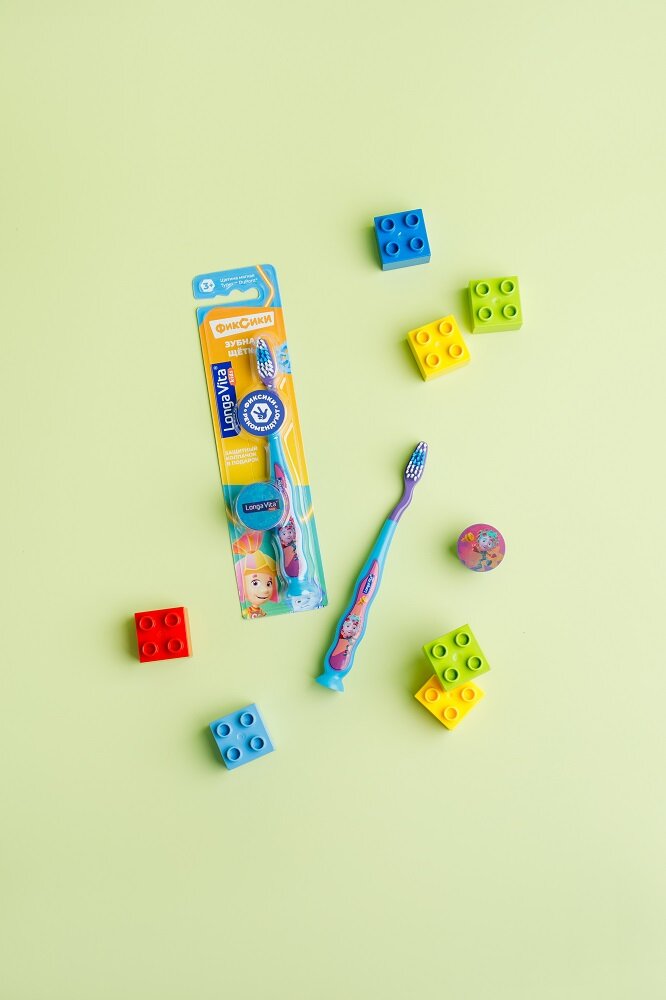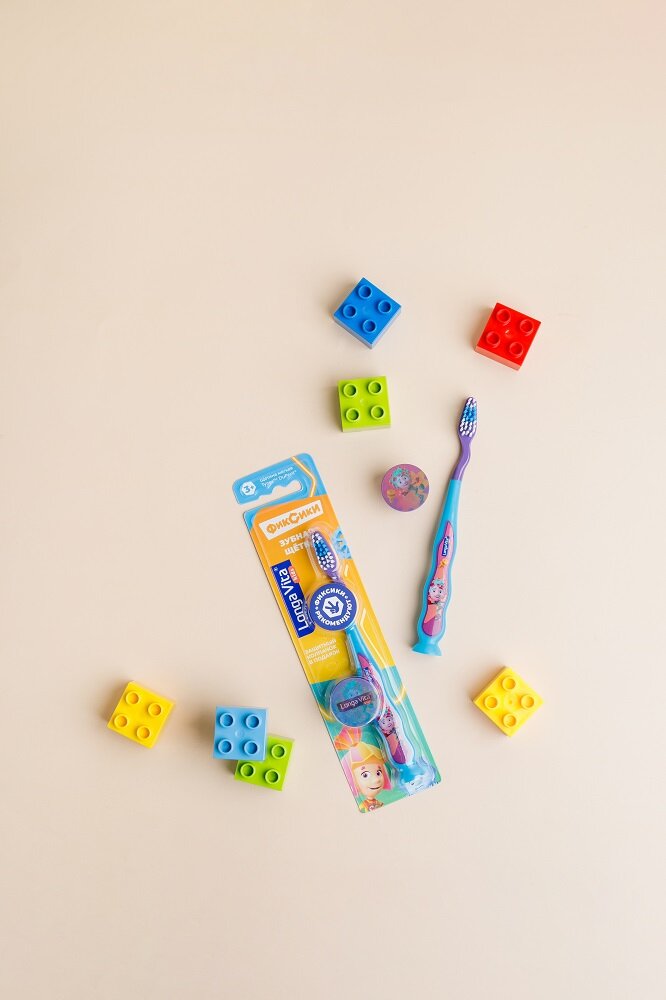 Детская зубная щетка с защитным колпачком, Фиксики, синяя, от 3-х лет, Longa Vita