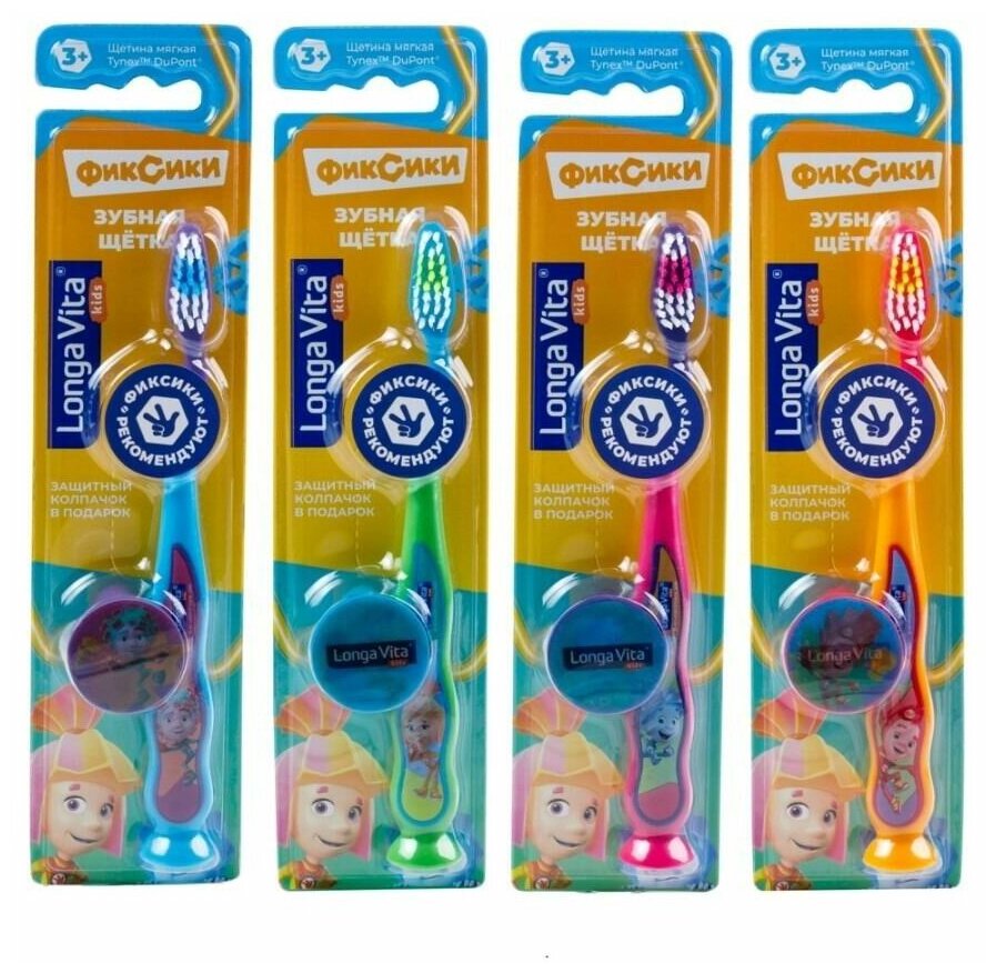 Зубная щетка Longa Vita детская фиксики (защитный колпачок, присоска), от 3-х лет