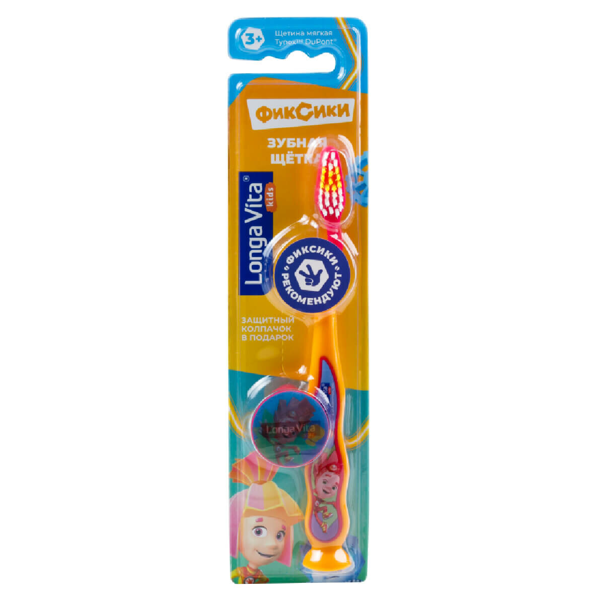 Детская зубная щетка с защитным колпачком, Фиксики, оранжевая, от 3-х лет, Longa Vita