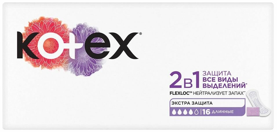 | Дополнительная информация | Ежедневные прокладки Kotex 2в1 созданы специально для тех моментов, когда вам необходима дополнительная защита! |