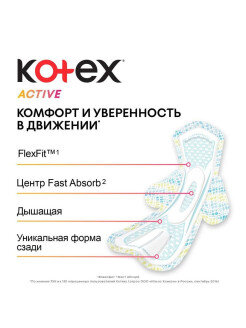 СохранитьKotex Гигиенические прокладки Ultra Active Normal, 8 прокладок в упаковке интересное: