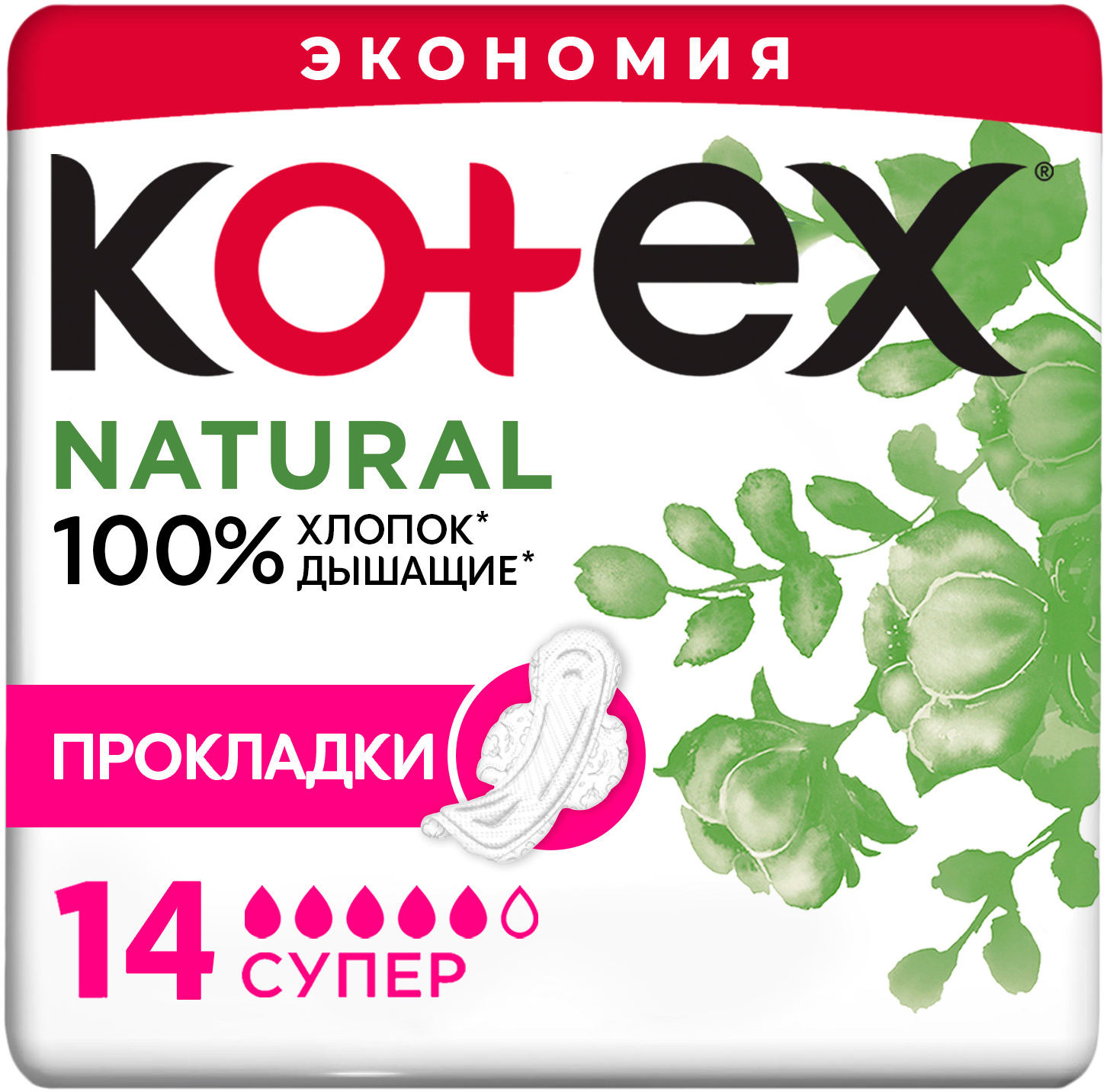 Гигиенические прокладки Kotex Natural Супер, 14шт.