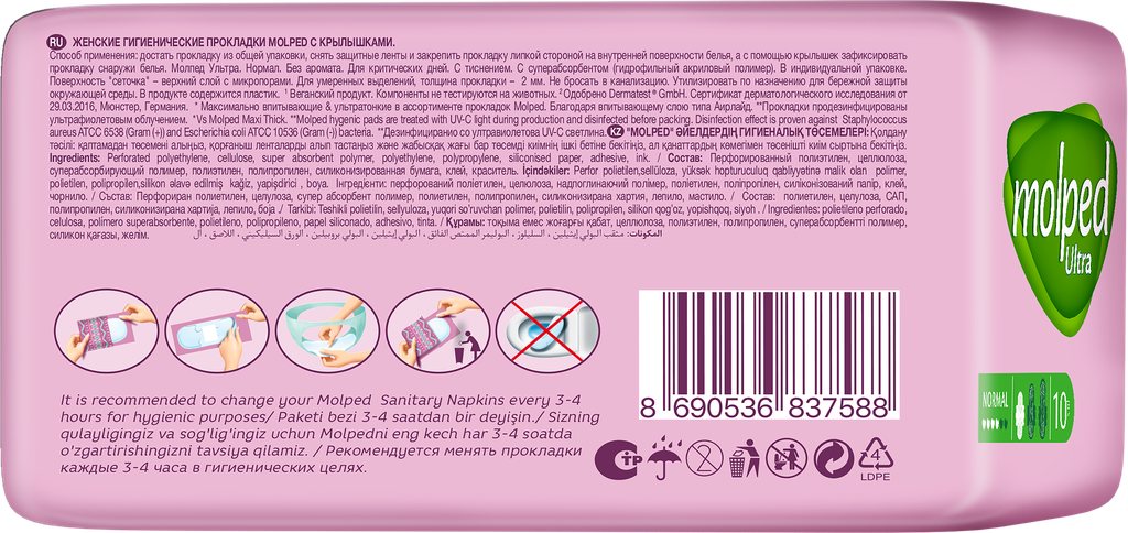 СохранитьПрокладки женские гигиенические MOLPED ULTRA Normal (нормал) 10 шт интересное: