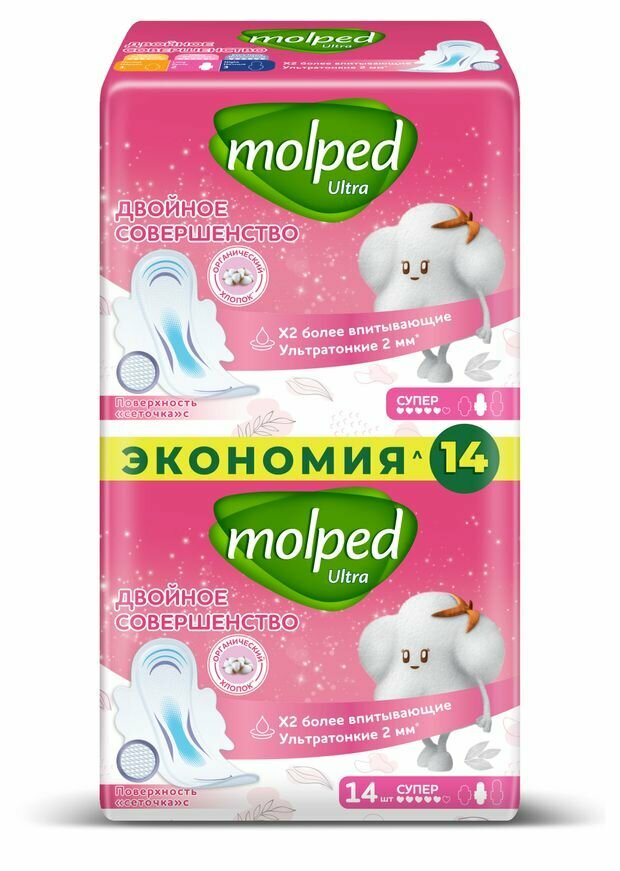 Прокладки женские гигиенические MOLPED ULTRA Super (супер впитывающие) 14 шт