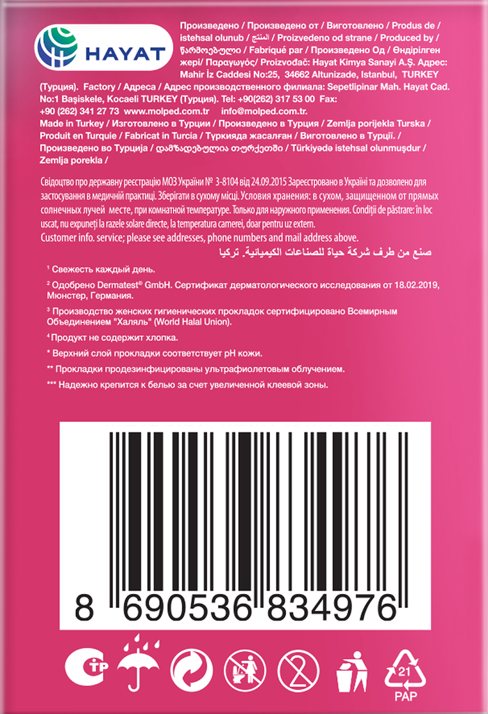 Прокладки женские MOLPED ежедневные, 60 шт