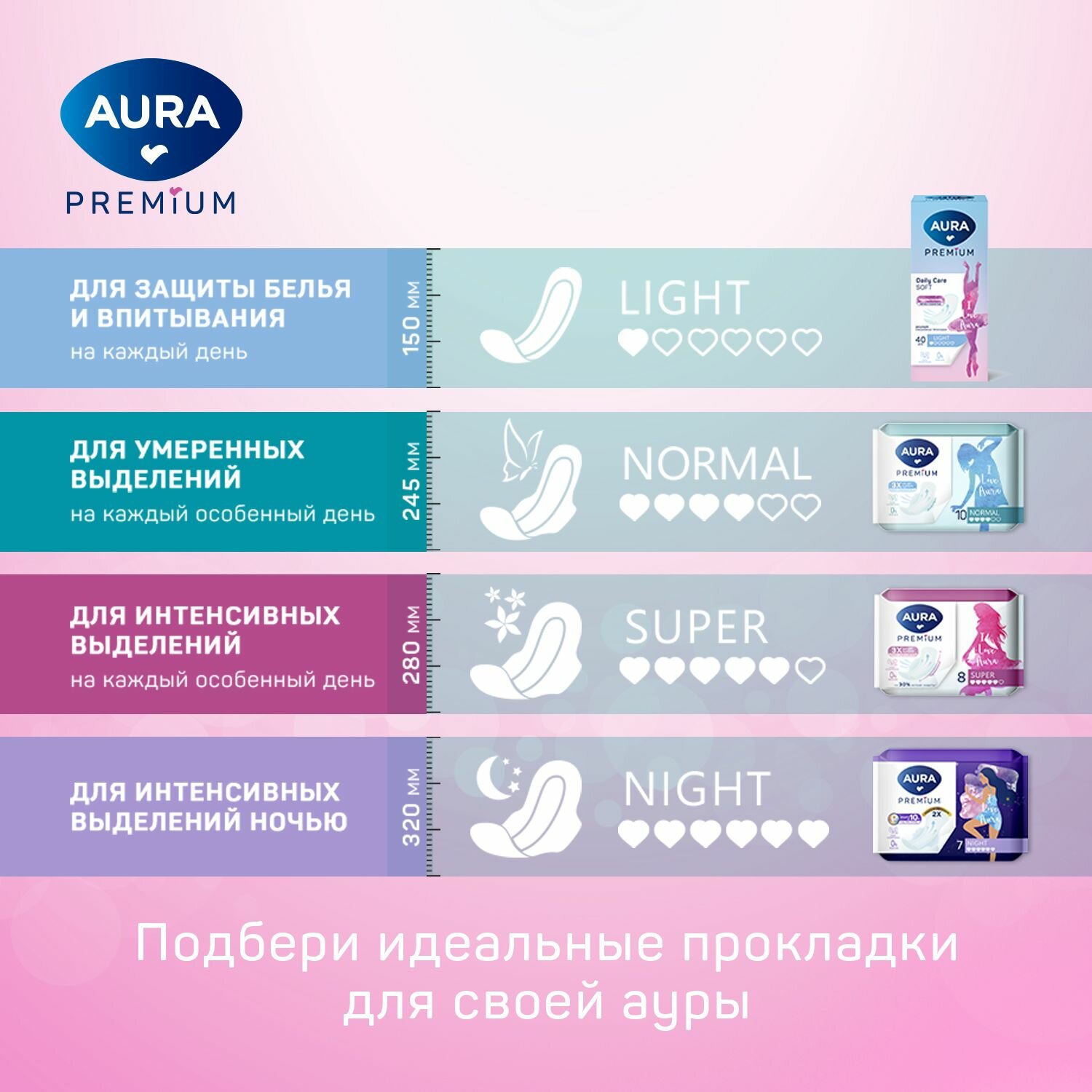 Прокладки женские ежедневные ультратонкие LIGHT 40шт, AURA PREMIUM