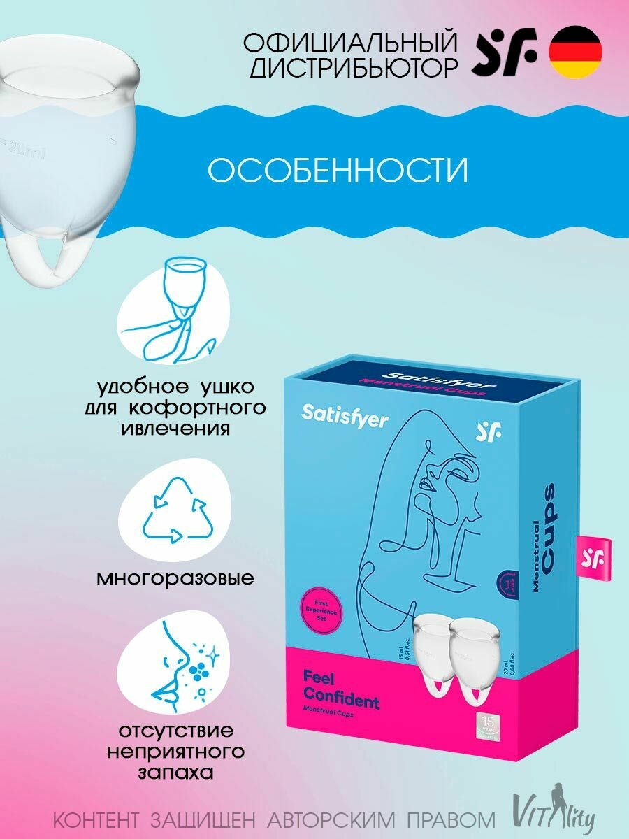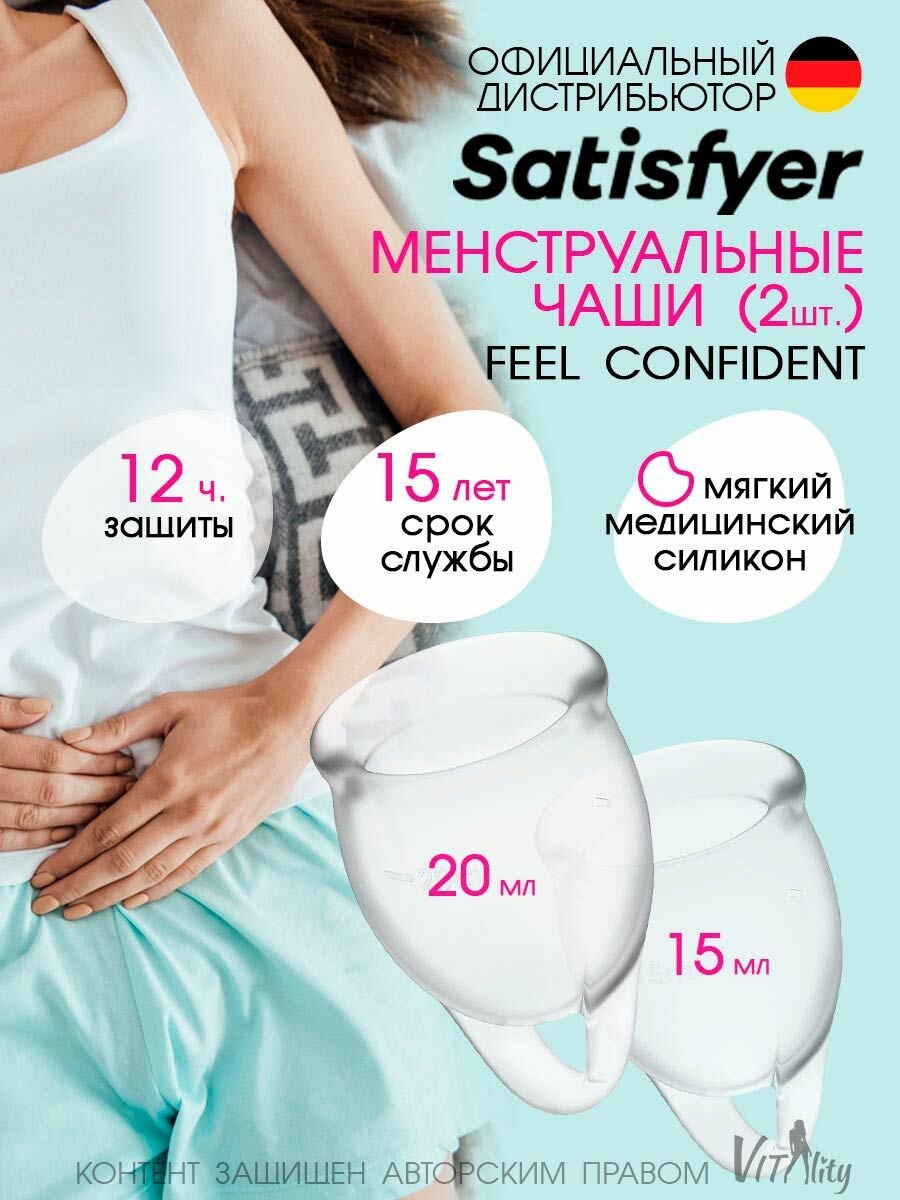 Satisfyer менструальные чаши Feel Confident 15 и 20 мл, 2 шт., прозрачный