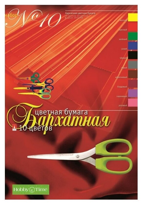 Набор №10 Бархатная бумага А4 10Л. 10 цветов интересное:
