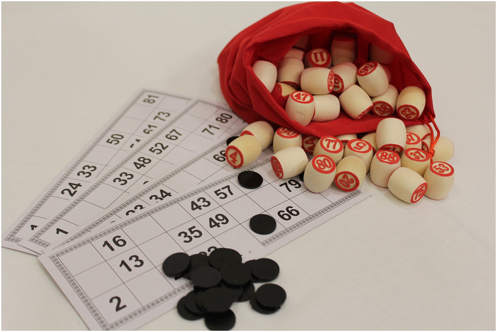 | Подробная комплектация | Резная деревянная подарочная шкатулка - 1 шт, 90 деревянных бочонков, 40 пластиковых жетонов, 24 карточки, мешок |
