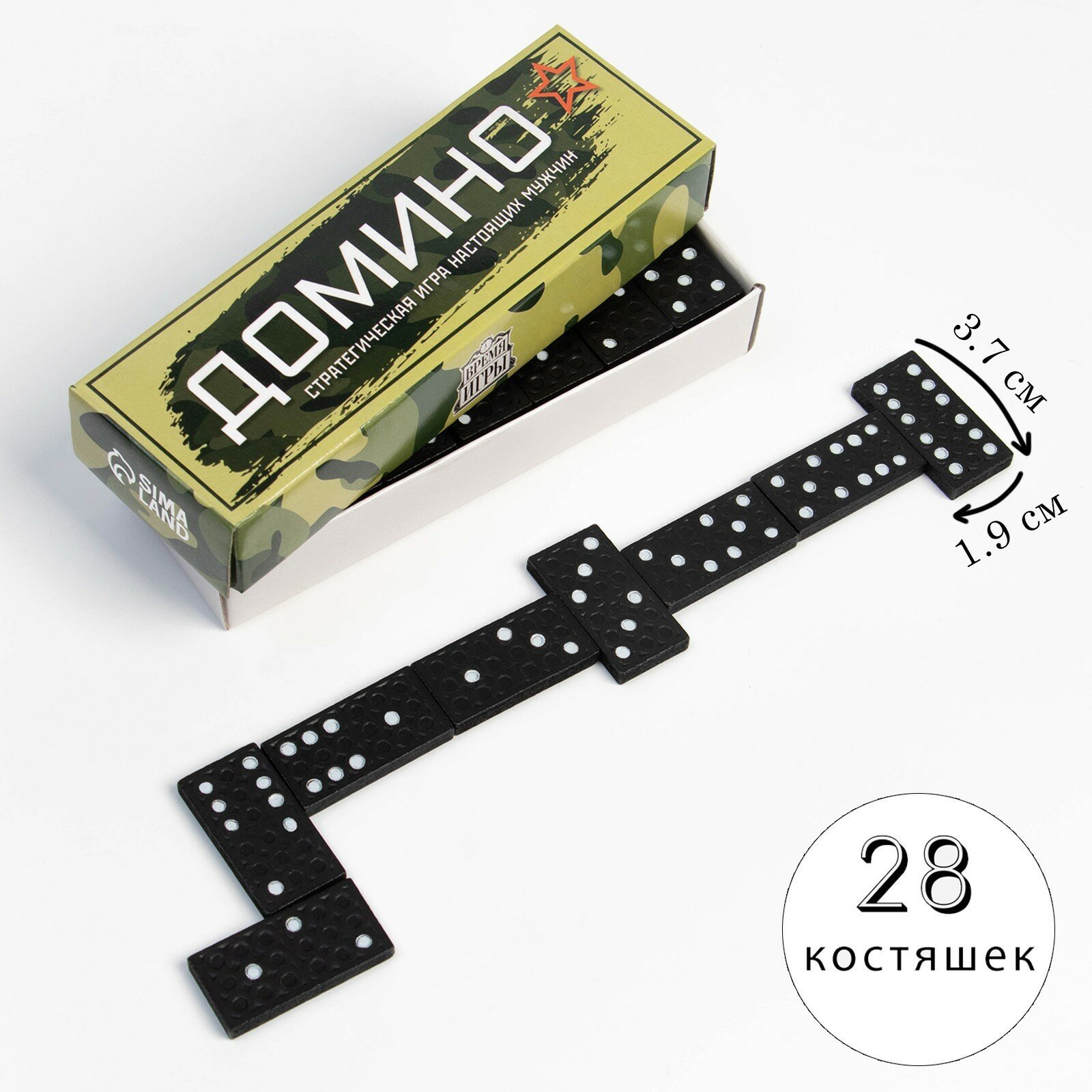 Купить Домино "Время Игры. Армейское", костяшка 3.7 х 1.9 см, 14.7 х 5 х 2.7 см