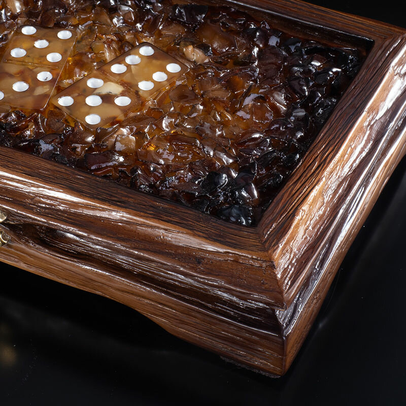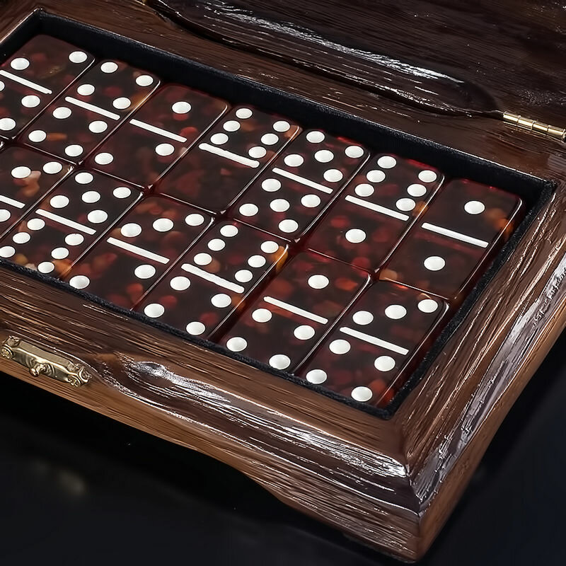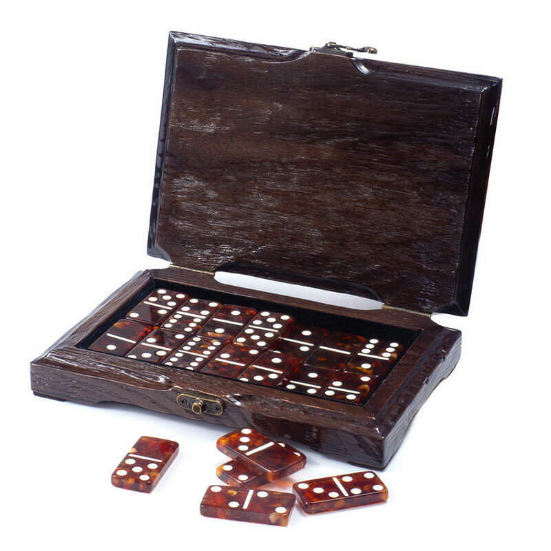 Купить Домино из натурального янтаря с фишками в резном деревянном ларце
