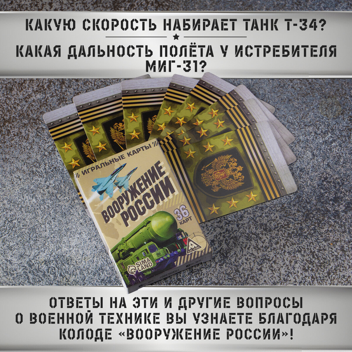 Ниже Вы можете прочитать отзывы на Игральные карты подарочные сувенирные «Вооружение России», 36 карт, ознакомится с подробными характеристиками, посмотреть интересные обзоры и фотографии на Игральные карты подарочные сувенирные «Вооружение России», 36 карт.