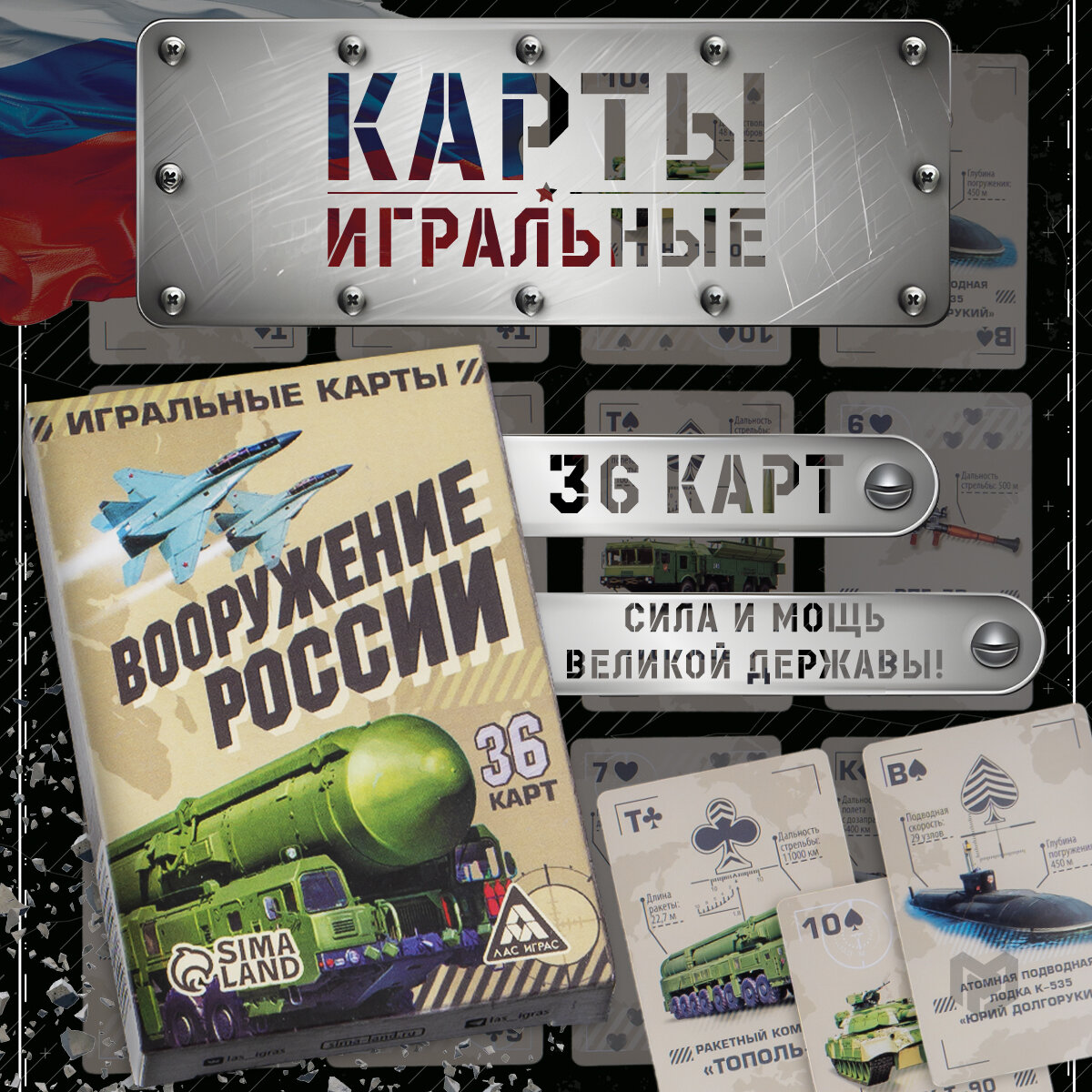 Карты игральные «Вооружение России», 36 карт, 18+