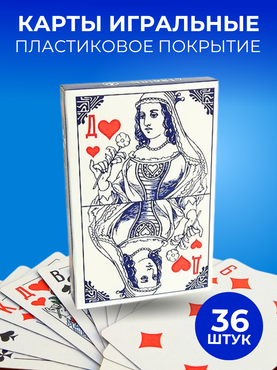 Купить Карты игральные 36 штук с пластиковым покрытием, 1 колода