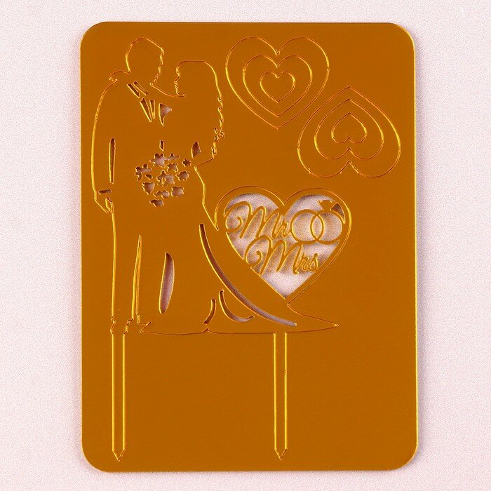 Топпер «Влюблённая пара», с сердечками, цвет золото интересное: