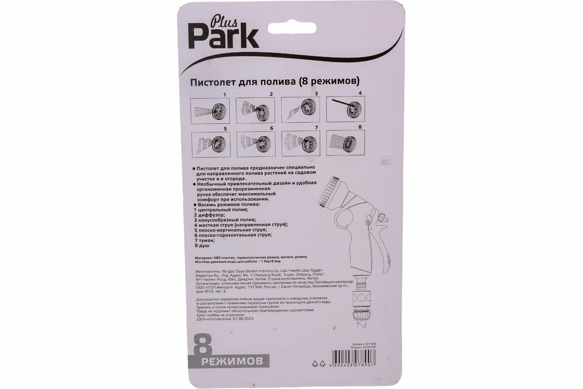 Park DY2072P Пистолет для полива (8 режимов) (001168) интересное: