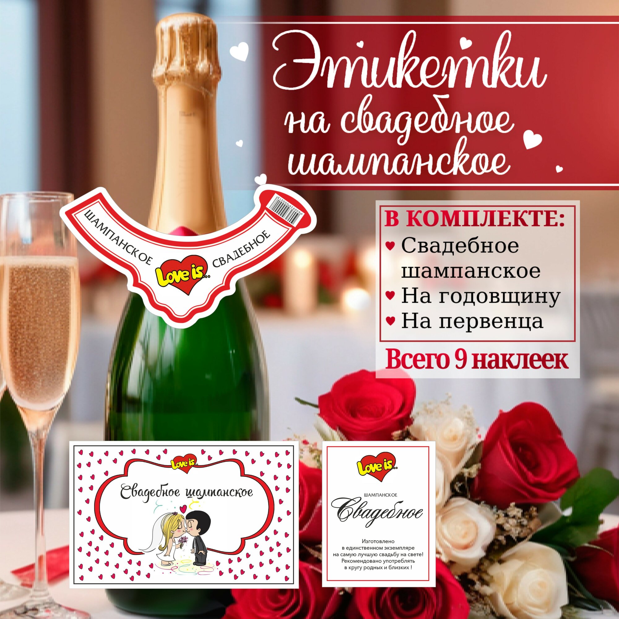 Купить Этикетки на свадебное шампанское, на годовщину свадьбы, на рождение первенца