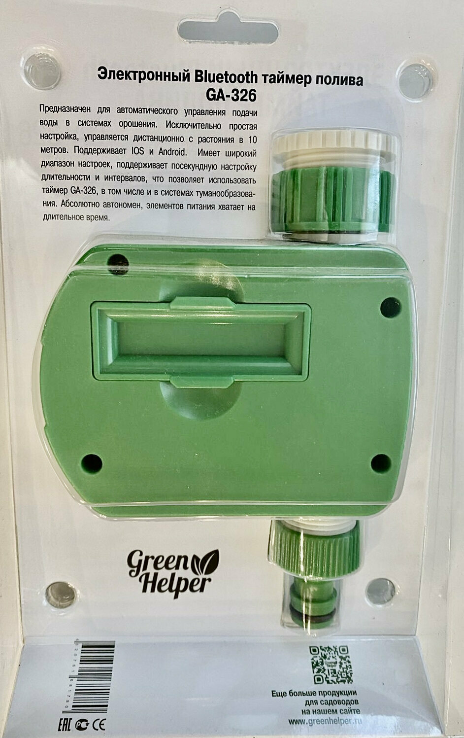 | Комплектация | таймер полива с Bluetooth Green Helper GA-326, съемный выходной адаптер, инструкция, гарантийный талон, упаковка |