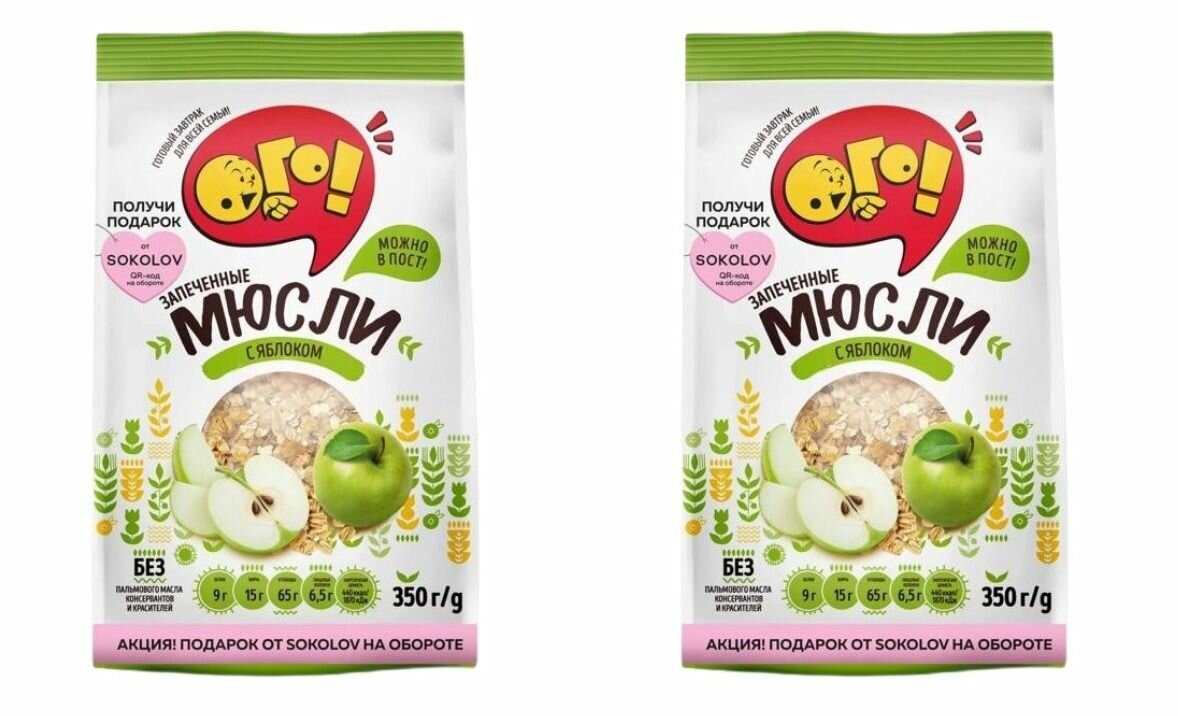 Мюсли запечённые с яблоком, 2 шт по 350 гр ОГО! интересное: