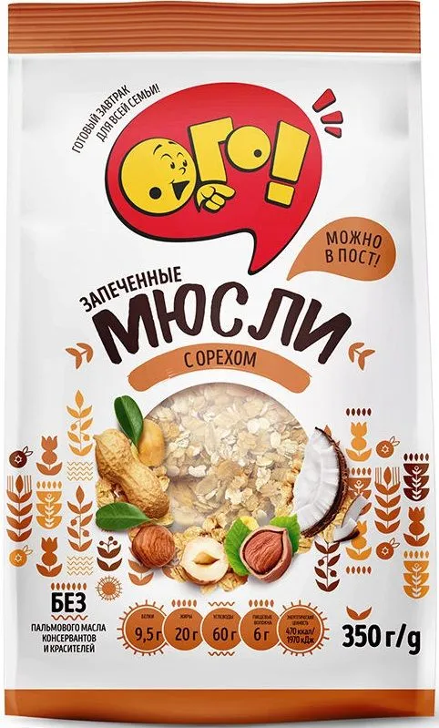 Мюсли запечённые с орехом, 2 шт по 350 гр ОГО! интересное: