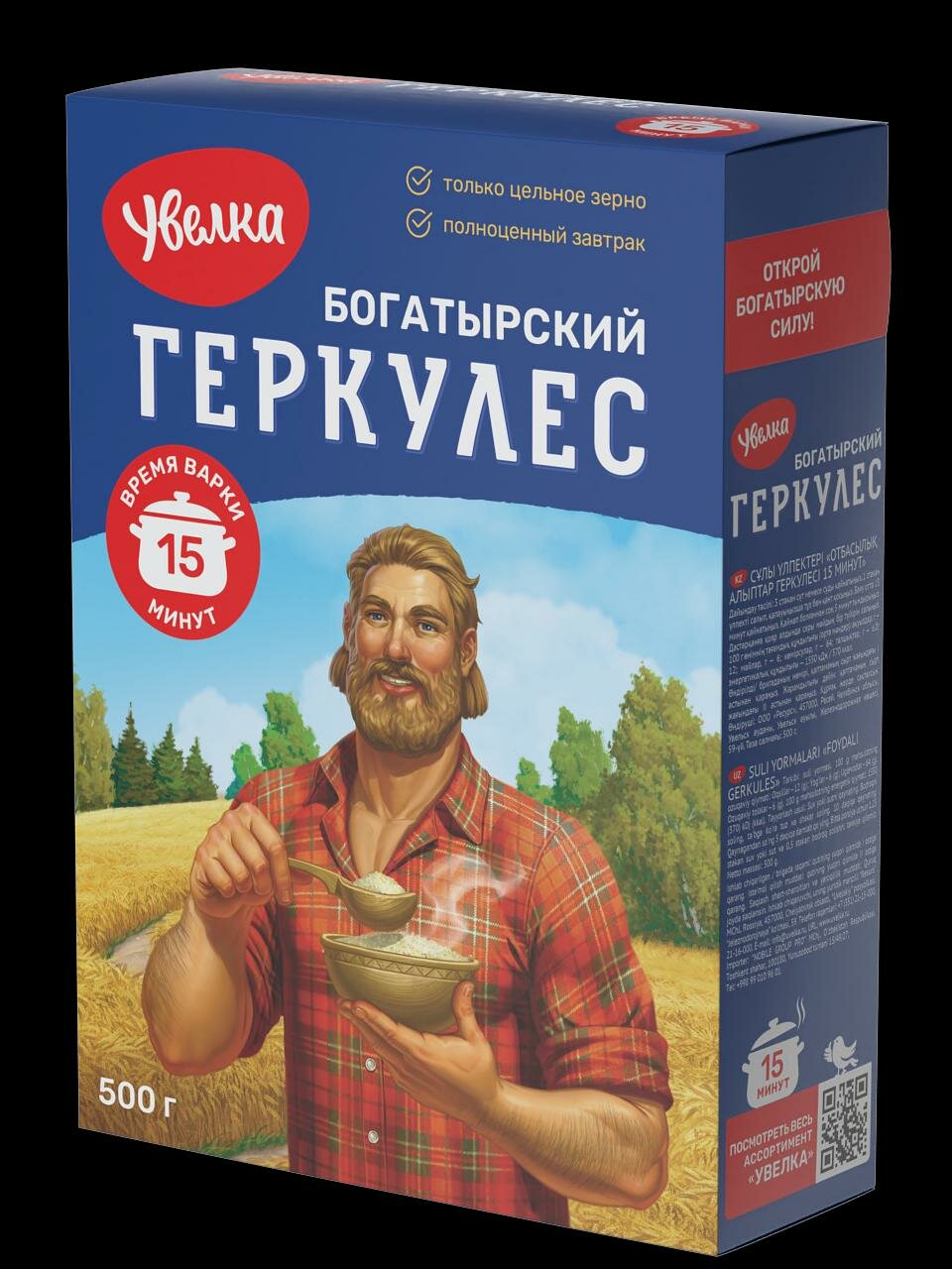 Упаковка из 6 пачек Хлопья Увелка овсяные Геркулес Богатырский (15 мин) 500г интересное: