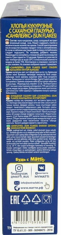 Ниже Вы можете прочитать отзывы на Хлопья Matti Sun Flakes кукурузные, 250г, ознакомится с подробными характеристиками, посмотреть интересные обзоры и фотографии на Хлопья Matti Sun Flakes кукурузные, 250г.