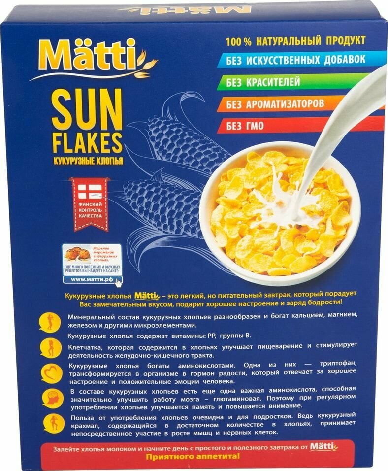 Хлопья Matti Sun Flakes кукурузные, 250г интересное: